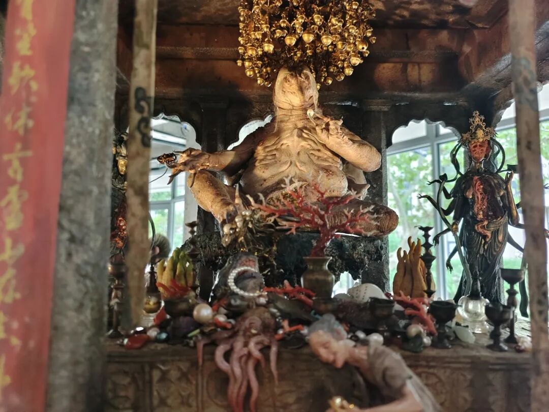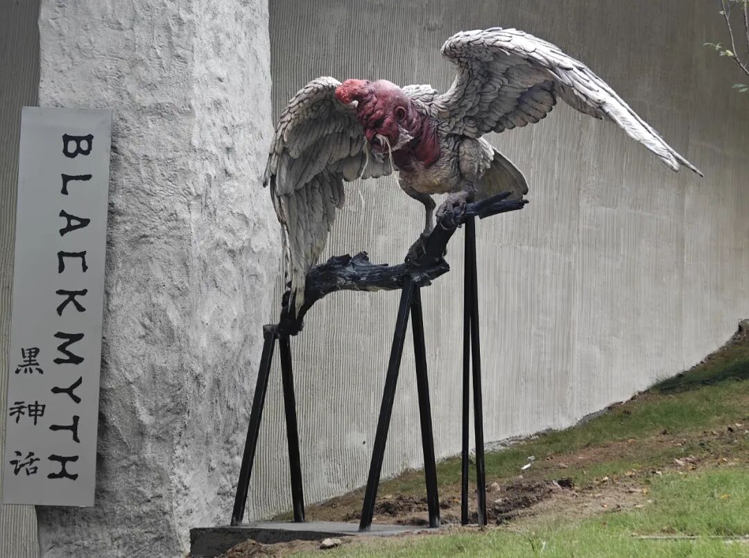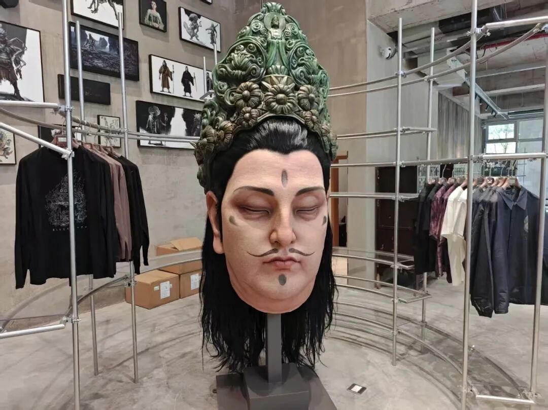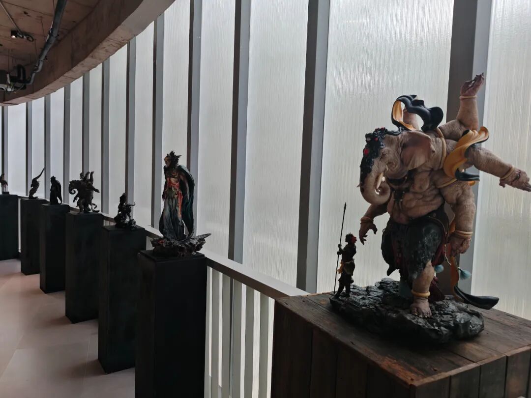 此前在黑神话中国美术学院艺术展上的一些吸睛展品,都被搬了过来。比如说灵吉菩萨的巨型头像。
