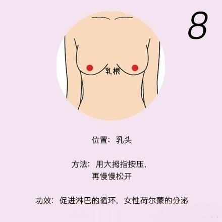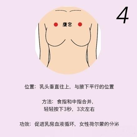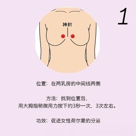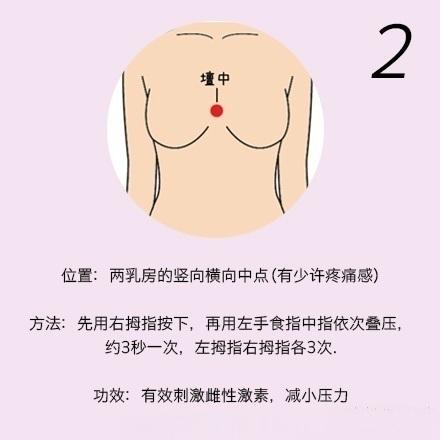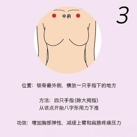 【胸部按摩法,刺激胸部9大穴位】用手指轻轻按压这9个穴位,刺激雌性激素、女性荷尔
