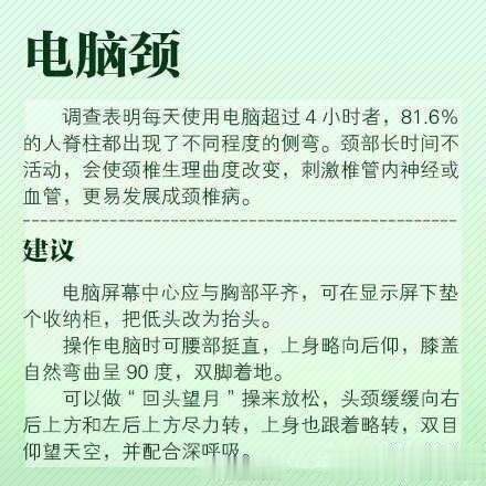 【学习简易锻炼法,远离现代病!】①办公臀:屁股越坐越大;②鼠标手:一直用鼠标手腕僵直无力;③电脑颈:每天使用电脑超4小时,81.6%的人脊柱都出现侧弯;④沙发腰:据统计我国腰椎病患者已突破2亿……不锻炼已成全球第四大死因!戳图学习简易锻炼方法,为健康收藏了~