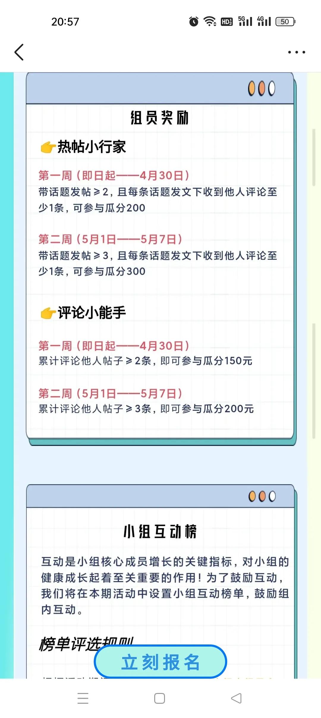 参与方式:点击右下角参与活动发文,带上话题 即可参与活动 活动奖励: 官方给予奖励以官方而定 小组奖励: 发文奖前3名,每人奖励8元, 评论奖2名,每人奖励2元 鼓励奖2名,每人奖励2元 评奖规则: 1、发布微头条大于15篇(每天发一篇很随意完成任务) 2、评论字数大于5字 3、关组长@王者荣耀交流交友组长 4、王者荣耀交流交友头条小组可同步发布奖励翻倍哦 5、小组的活跃在于组员之间的互动 开奖日期:(5月7号) 6、[玫瑰]话题放到最前面,以便好统计