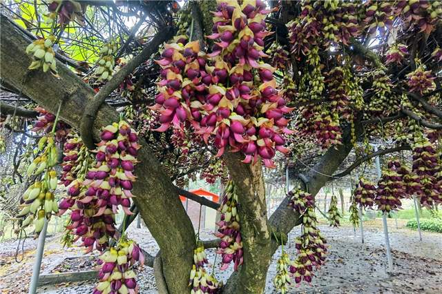 走进卡玛,最引人驻足的,莫过于那一片紫霞氤氲的玉堂春林。作为广东最大的玉堂春观赏园,这里种植着数千株玉堂春。此刻正值盛花期,粗壮的枝干上不见叶芽,只有硕大的花朵密密缀满枝头。那花色,是极有层次的紫——近看如缎,远观似霞;那花形,是极有风骨的挺——瓣瓣舒展,端庄清雅。正如古诗所云:“花开不用叶相扶,自向春风展画图。”