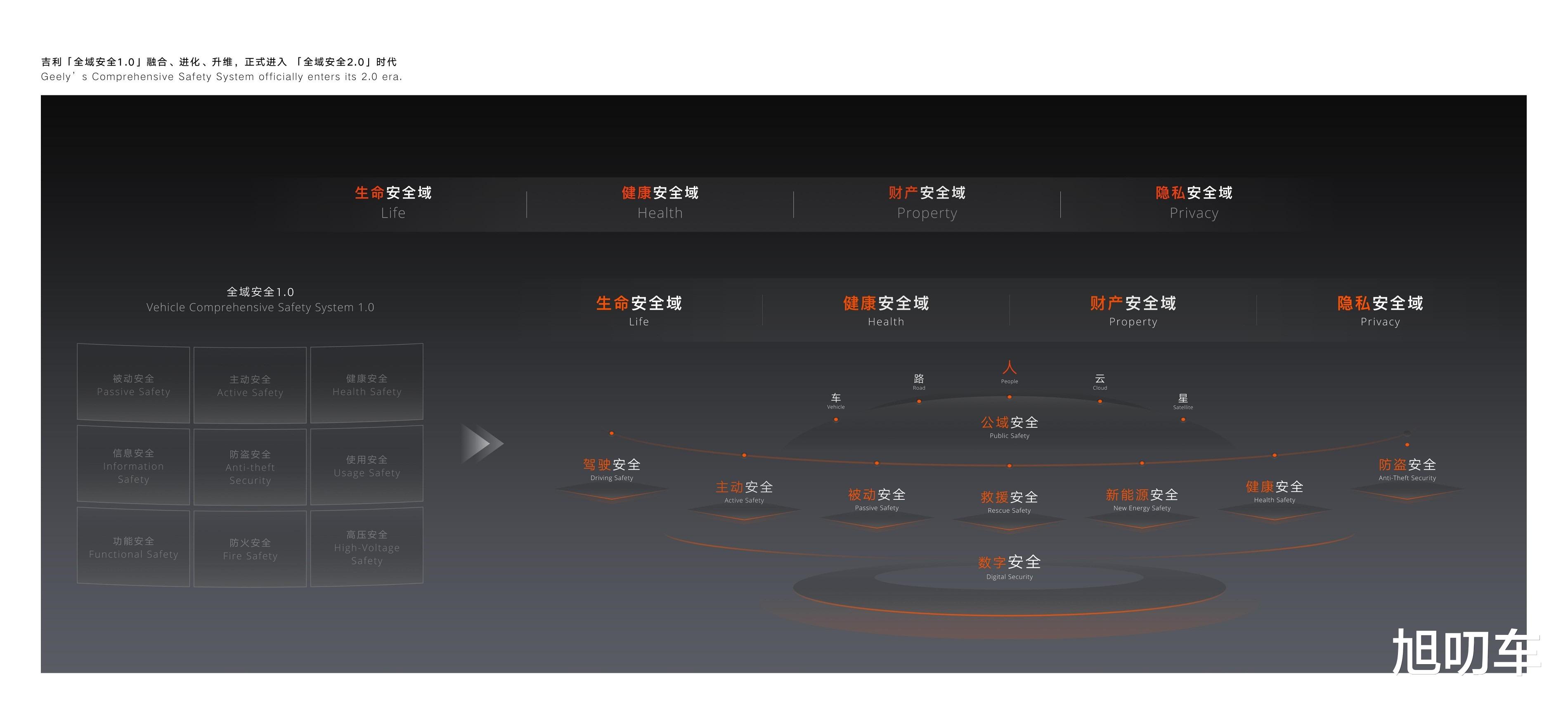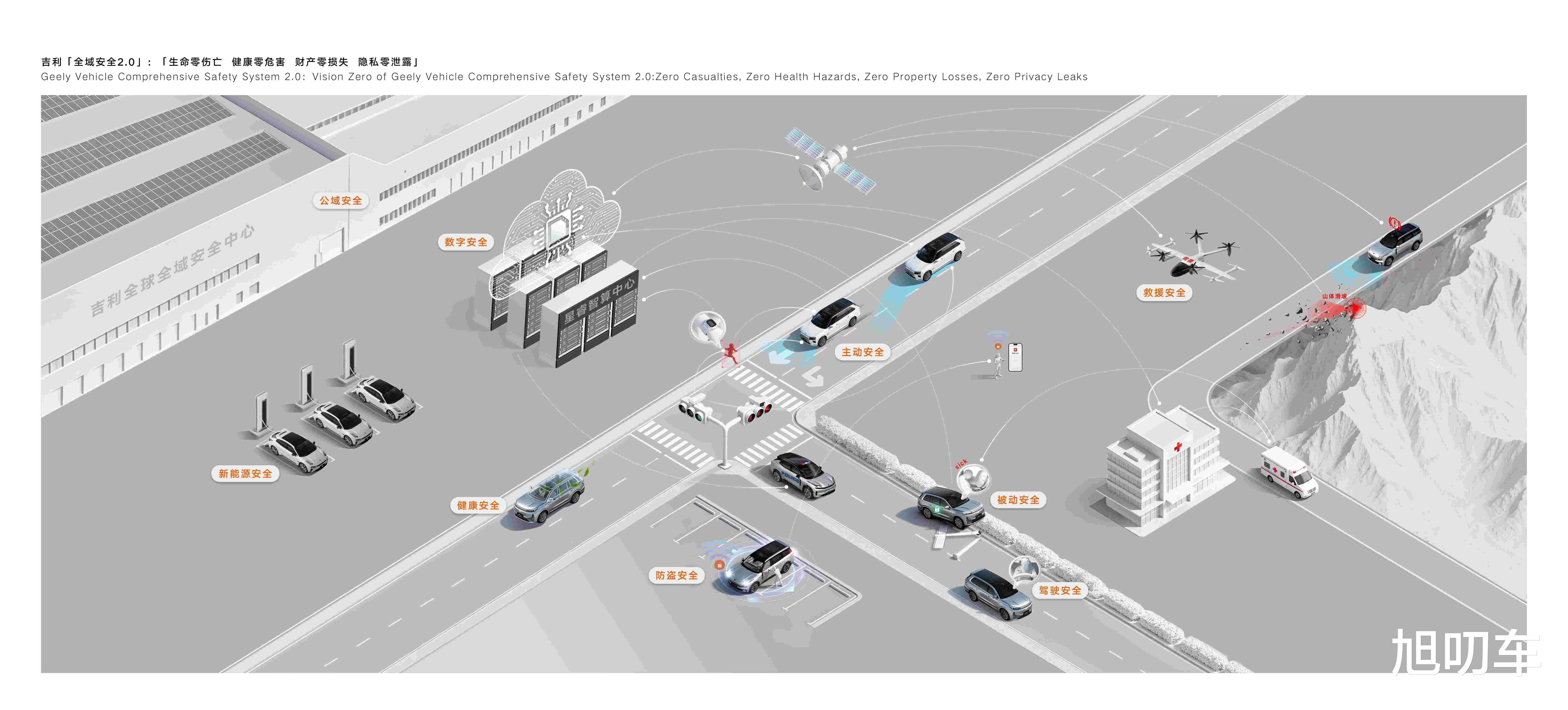吉利在“全域AI”技术体系的赋能下,以“AI为纲 责任为本”,基于原有的“全域安全”技术体系进阶打造“全域安全2.0”技术体系。结合智能时代的安全新需求和新挑战,“全域安全2.0”技术体系秉持“以人为尊”理念,通过技术升级、能力突破与范式创新,将侧重“整车安全”的视角升级为“人-车-路-云-星”的生态视角,旨在贯穿用户出行全场景、覆盖出行全领域、联动出行全生态;并以“生命零伤亡、健康零危害、财产零损失、隐私零泄露”四大安全愿景为指引,逐步构建的一套为消费者提供全面的安全保障技术体系。