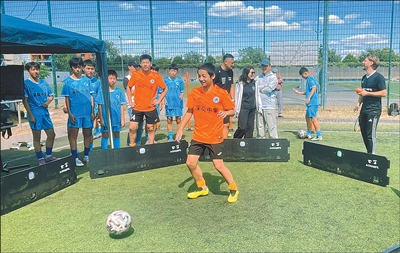 杭州市采荷中学足球队队员张泽亨凭借5粒进球斩获本届赛事最佳射手。他坦言,德国赛场的快节奏与球员的高脚下频率,让自己看到了差距,也明确了努力方向。赛后,中国球员还体验了德国体育科技公司A—Champs的智能训练系统。该系统通过光、声、振动等多感官提示训练球员的反应能力,公司销售和业务发展副总裁罗兰·比罗介绍,借助高科技有助于训练运动员的感知、决策和执行能力,最大限度提升训练水平。