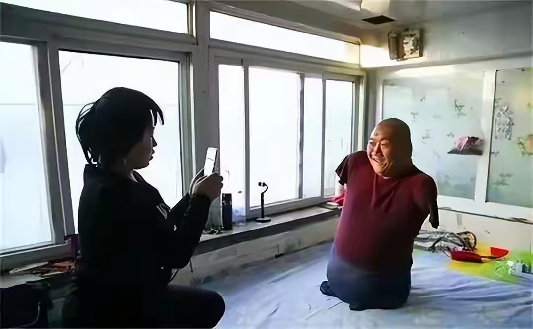 有了孩子之后,生活压力就更大了, 转机出现在2015年。一个路人把他街头弹唱的视频发到网上,标题叫“无四肢小伙用嘴弹琴”。