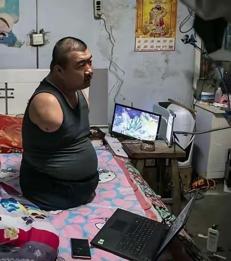 直播初期,他每天从下午三点播到晚上九点,长时间左侧卧导致脸部磨出老茧,牙齿酸痛,颈椎受损,甚至检查出内脏左移。脖子和脊椎的疼痛更是永恒的底色。但他从未放弃。