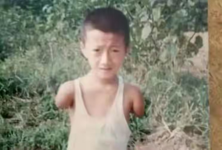 三岁的时候,母亲教他用嘴叼筷子吃饭。无数次失败,又无数次尝试,嘴边都磨出了血泡。