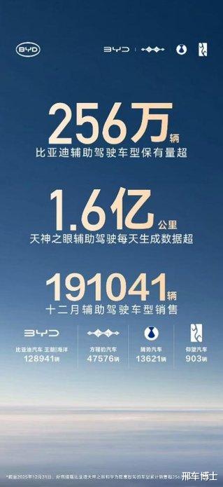 当辅助驾驶从汽车行业的 “加分项” 变成用户购车的 “必选项”,比亚迪用实力给出了最优解。截至 2025 年 12 月,比亚迪辅助驾驶车型累计保有量超 256 万辆,稳居中国车企第一,让 “全民智驾” 的承诺照进现实,让技术普惠走入千家万户。
