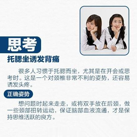 【这8种坏姿势最伤身!一定要改改!】俗话说“站有站相、坐有坐相”,好的姿势不仅看来优雅得体,对身体 也益处良多。但生活中,做到站直、坐正、不驼背、不含胸的人却少之又少。哪些姿势最伤身?伤害有哪些?正确姿势应是怎样?