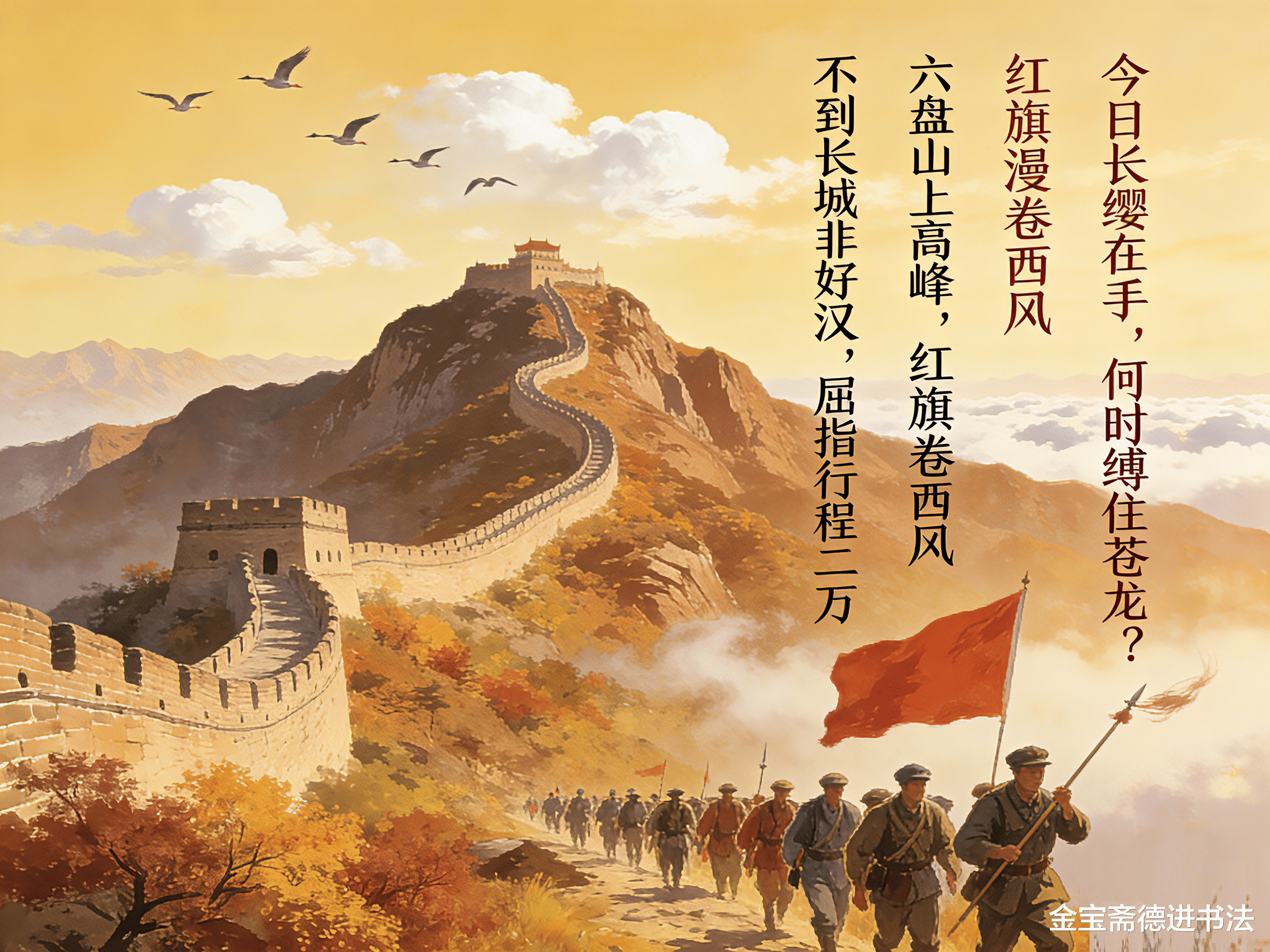 六盘山上高峰,红旗漫卷西风。
