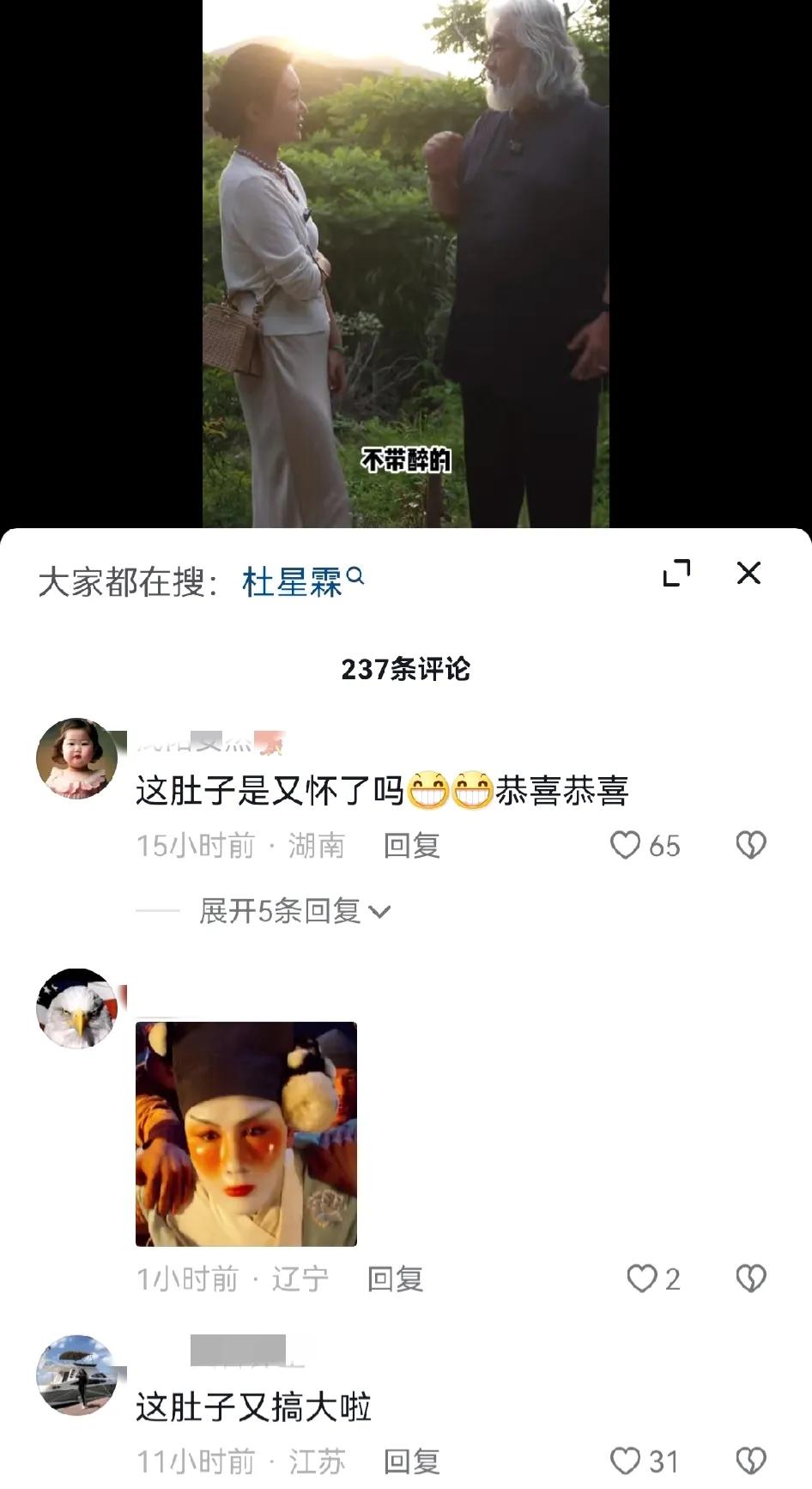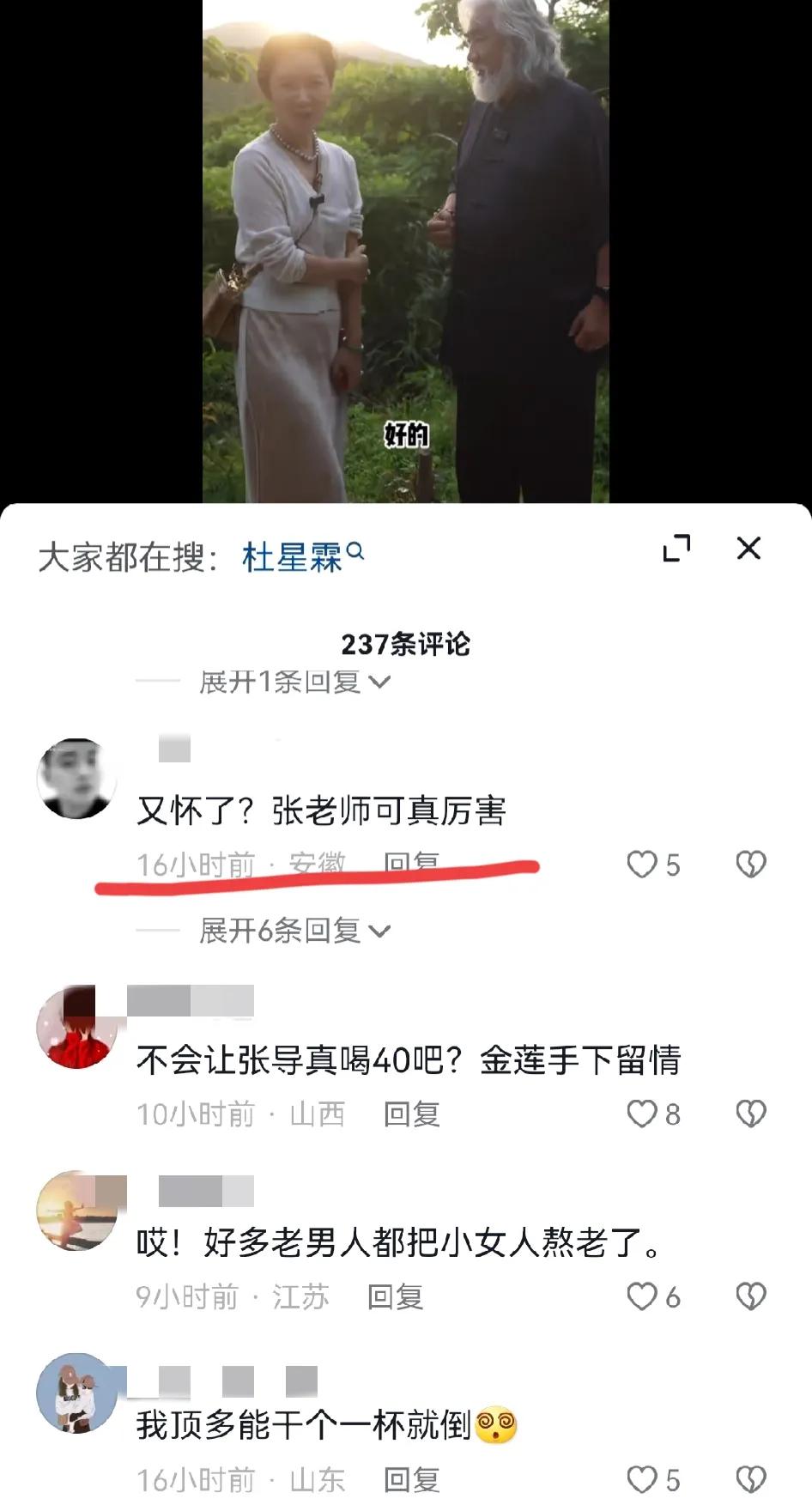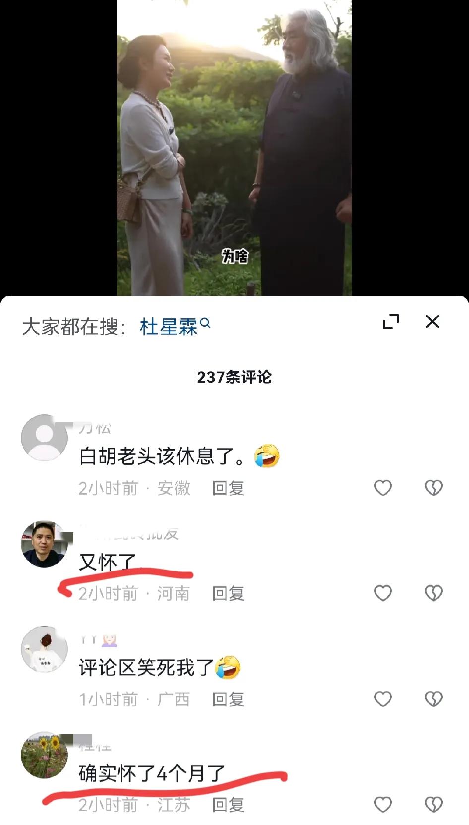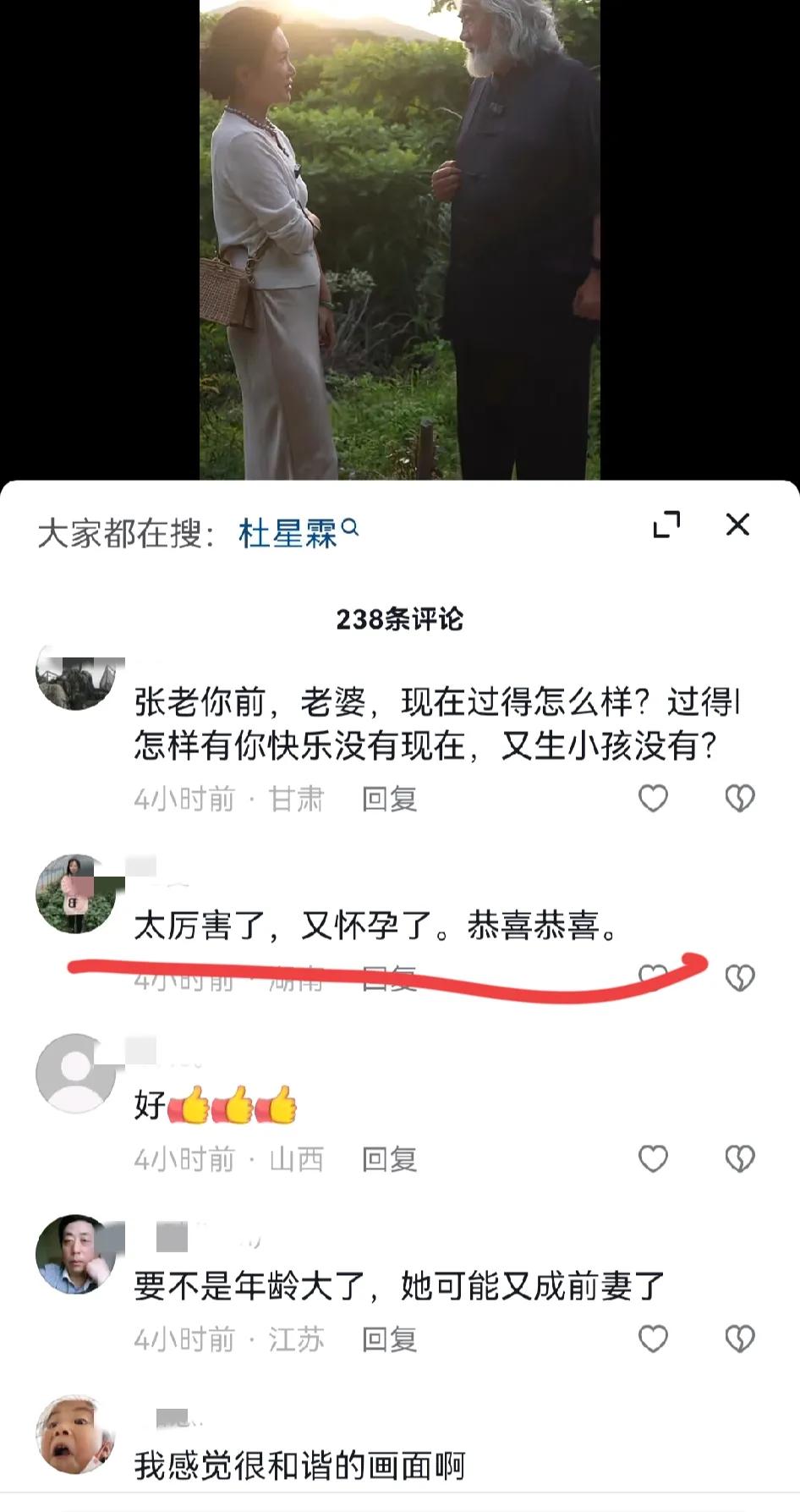 张纪中小31岁老婆怀三胎了? 5月28日凌晨,张纪中夫妇发视频为自己直播带货做宣传。结果,小31岁老婆杜星霖隆起的小腹被指怀孕,引发网友热议, 画面中,张导身穿蓝色古风长衫,一如既往的留着银色长发和一脸的大白胡子,大导演范儿十足。而小31岁的老婆杜星霖则身着浅色针织衫,将头发扎在脑后,脖子上戴着硕大的珍珠项链,整个人看起来温婉贤淑,贵气十足。 只见两人十指紧扣,一边宣传直播带货的事情,一边欣赏美景。结果,细心的网友发现,杜星霖的小腹微微隆起,整个人看起来孕味十足。 大家看后,纷纷表示: 这肚子是又怀了吗?恭喜恭喜 又怀了?张老师可真厉害 确实怀了四个月了 太厉害了,又怀孕了,恭喜恭喜。 众所周知,张导和小31岁老婆杜星霖婚内已育有一儿一女两个孩子,加上张导之前的混血儿子马丁,家里已经有三个孩子了,这次张夫人疑似又怀孕了,真是恭喜恭喜。 咱就是说,有经济实力的人都在不停的生孩子,例如网红彩虹夫妇以及陈三废姐弟等人,正在拼第三胎第四胎,其实,普通老百姓也想多生孩子主要是怕养活不起,房子也不够大住不下。 不管怎样,我们还是祝福张导一家人永远幸福快乐吧!