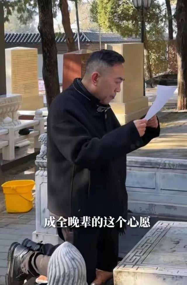 通过杨议二哥发布的视频,我们能清清楚楚看到,杨议一个人跪在了墓前,手里还拿着一张纸,疑似在对照着纸条念读。