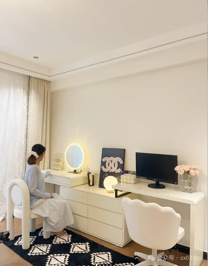 空间允许也可以床尾衣柜定制,侧面斗柜布局,空间更显大。满足了日常各种物品的分类收纳,加上摆件装饰,颜值无敌了。「床尾斗柜+化妆台,完美卧室标配」
