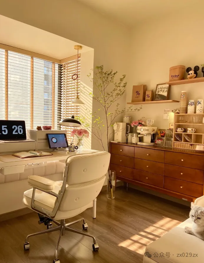满足书房杂物收纳的同时,台面兼顾水吧台,妥妥的休闲咖啡角。