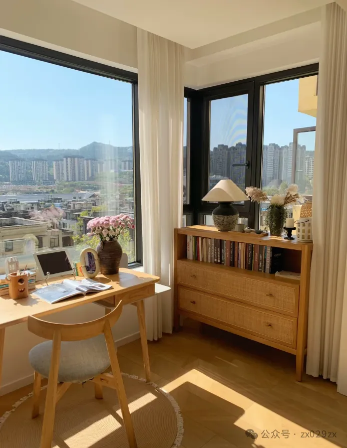 当阳台布局书房的时候,斗柜兼顾收纳和书柜功能。