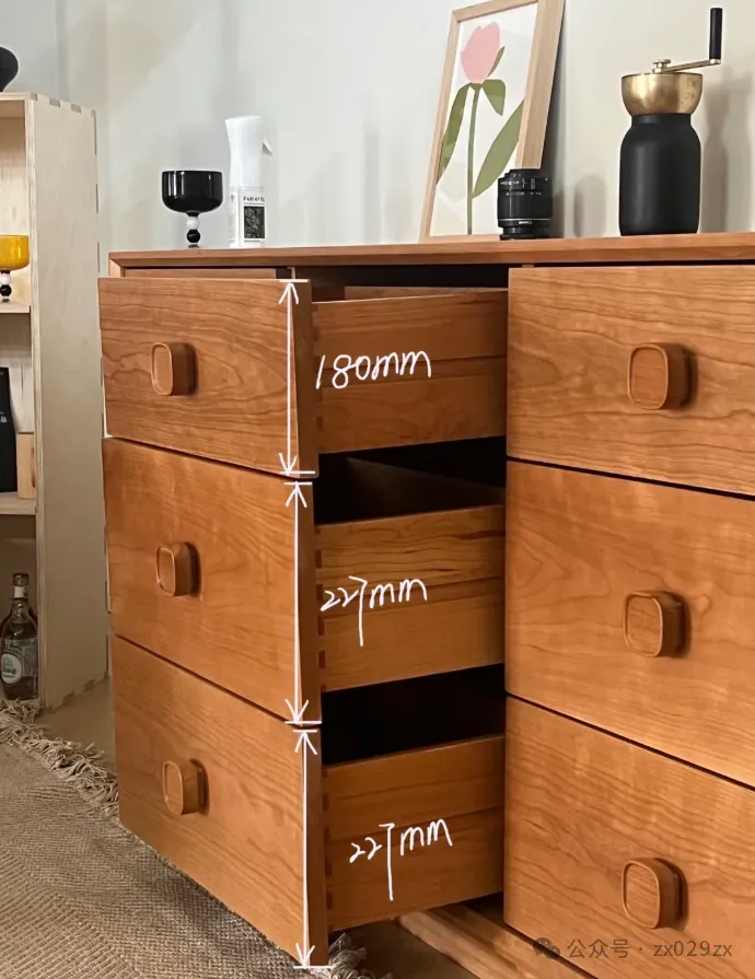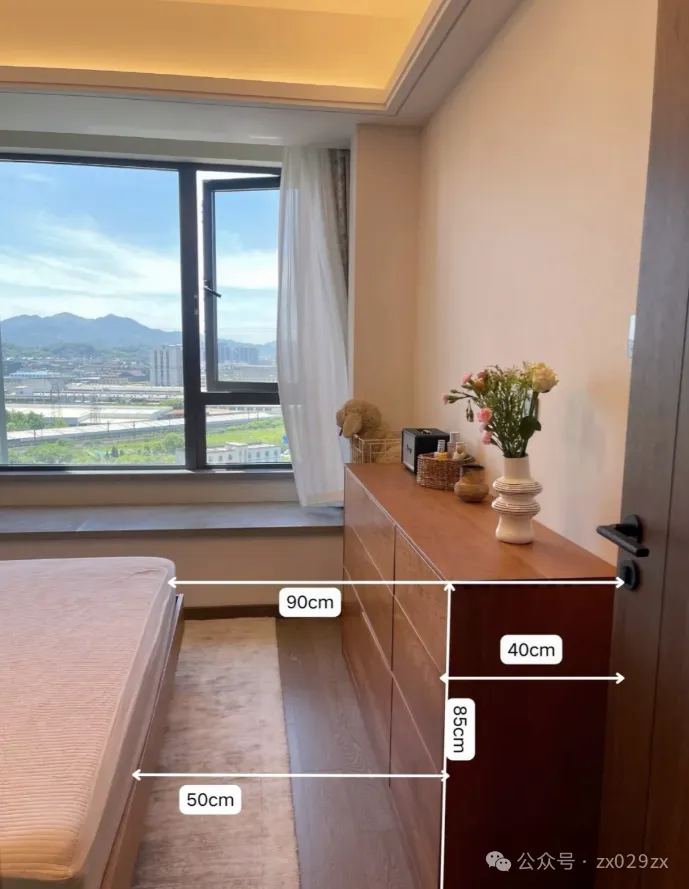 ⑴尺寸重点:不论放什么位置,尺寸才是最重要的,提前量取实际空间尺寸,留出充足的过道空间,同时保证抽屉能顺利开合取物。