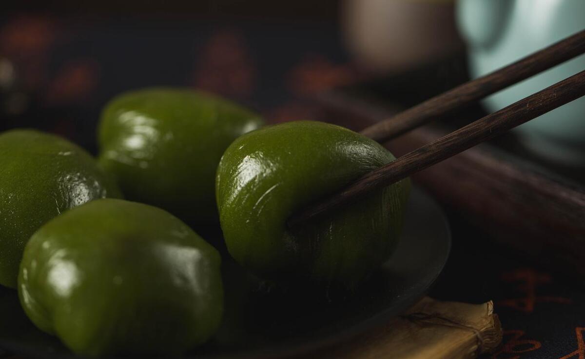包裹青团时,取一小块艾草糯米面团,搓成小球,轻轻按压成小圆饼状,然后放入适量的馅料。将面团四周捏紧,包好馅料,搓圆。蒸制青团时,将包好的青团放入蒸锅中,蒸锅内垫上油纸防粘,水开后蒸15到20分钟,直到青团表面光滑,熟透为止。蒸好的青团取出,稍微冷却后即可享用,青团的香气扑鼻而来,令人垂涎欲滴。