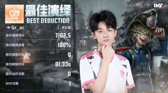 2024年10月11日,第五人格IVL秋季赛第二周首日的比赛开始。在当天的比赛中, Gr以 2胜0平0负(10:6)的战绩击败了GW,以下是本场比赛战报。