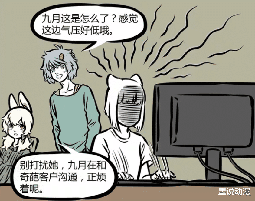九月大多时候都在摸鱼,不过偶尔也会努力工作。哮天发现九月情况不太对,感觉身边气压很低。那么九月到底是怎么回事?小玉告诉哮天,现在最好不要打扰他,九月跟奇葩的客户沟通,搞得十分烦躁。