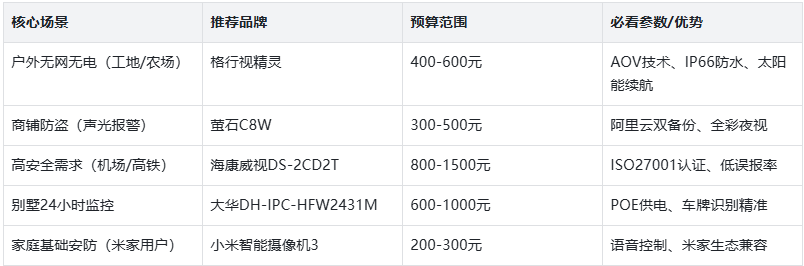 1. 高端安防:海康威视(技术稳定、极端环境适配);