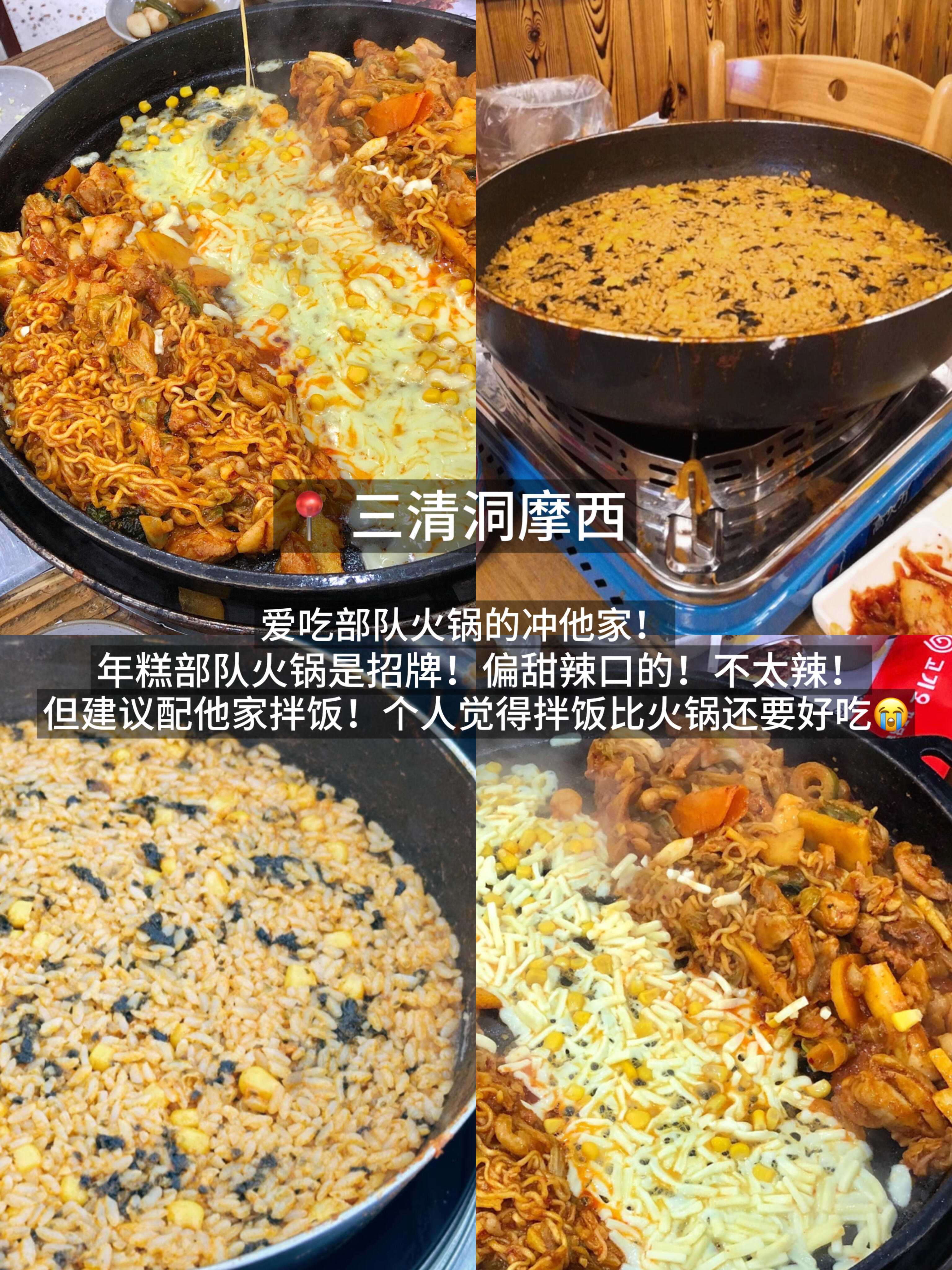爱吃部队火锅的冲他家!年糕部队火锅是招牌!偏甜辣口的!不太辣!但建议配他家拌饭!个人觉得拌饭比火锅还要好吃😭