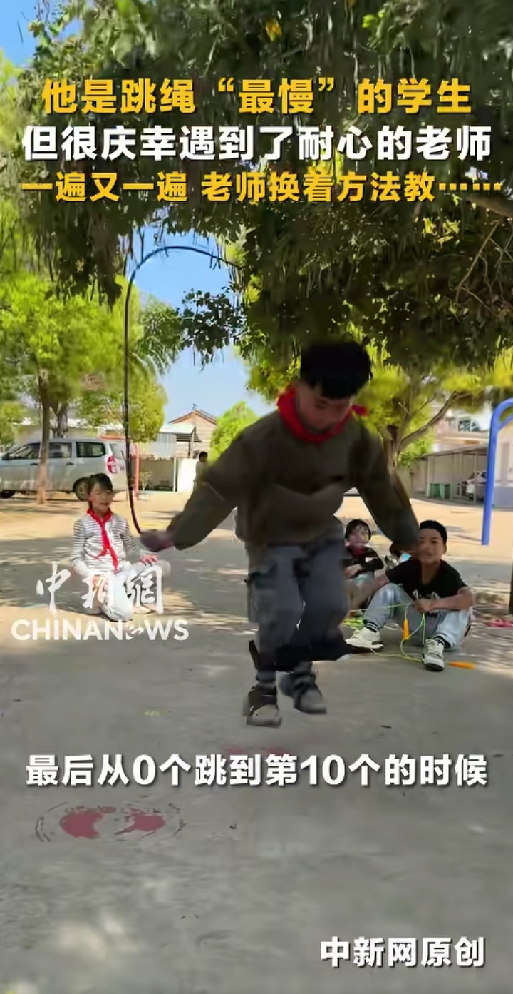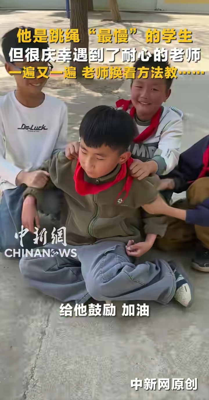 他看似只教了一个孩子跳绳,却让班里其他内向的孩子也鼓起勇气尝试突破,让整个班级充满互助和暖意。在一个崇尚“快”的时代,我们习惯了为领跑者喝彩,却常常忽略了那些落在后面的人,而陆富川老师用行动告诉我们,真正的教育不是筛选出优胜者,而是守护每一个慢行者的尊严与希望。