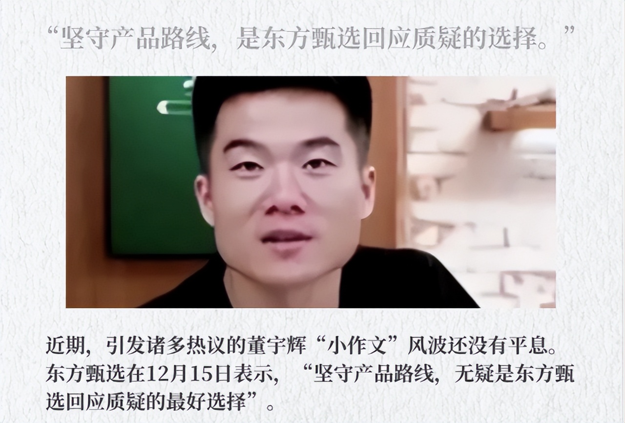 更早之前,公司自己做的海报短视频,还有俞敏洪在公开场合,都一直在强调董宇辉的小作文,夸他文案好,夸他有才,这回突然改口,粉丝一下子炸了,很多人觉得这是抢功,是在他最红的时候,急着把功劳拉回到团队身上,也有人说,就算真是团队写的,也不该这么说出口。