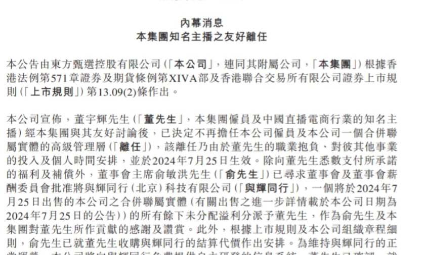 董宇辉当时离开东方甄选的通告