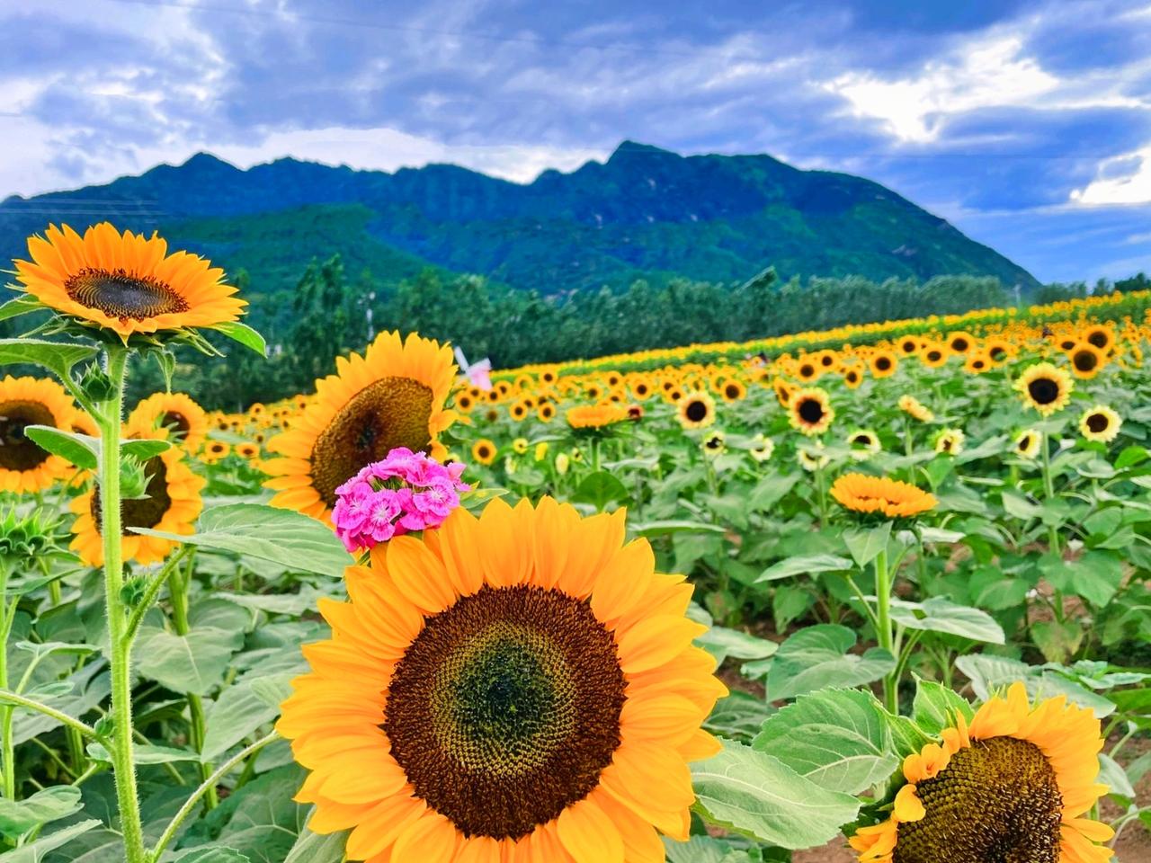 🌻向日葵又叫朝阳花,因其花常朝着太阳而得名,花语是信念、光辉、高傲、忠诚、爱慕,寓意是沉默的爱。还代表要勇敢追求自己想要的幸福,听起来既励志又浪漫。旅行推荐官 向日葵有个很好的花语 #治愈系风景