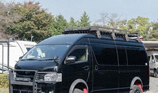 第一眼看到丰田海狮Hiace越野版,黑色的涂装让人感到震撼,仿佛披着一层铠甲,前保险杠的棱角分明,车顶的行李架随时准备承载帐篷或皮划艇。后门加装的金属爬梯让人可以轻松登上车顶,眼前的视野瞬间开阔,能够绑行李、架太阳能板,甚至躺着看星空。设计师在外观上并没有只顾着耍帅,整车的尺寸控制在5.38米长、2米宽,既能在狭窄的山路上灵活穿行,也能在城市停车场中找到合适的位置。