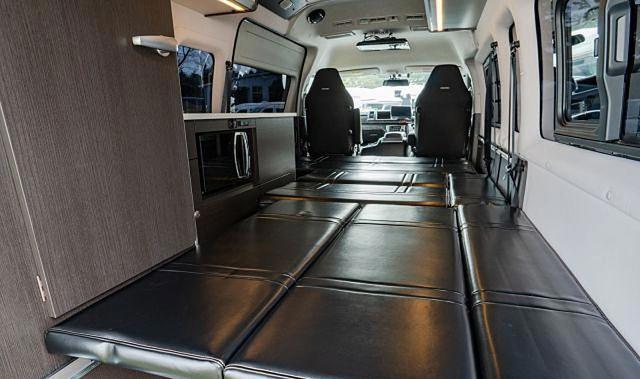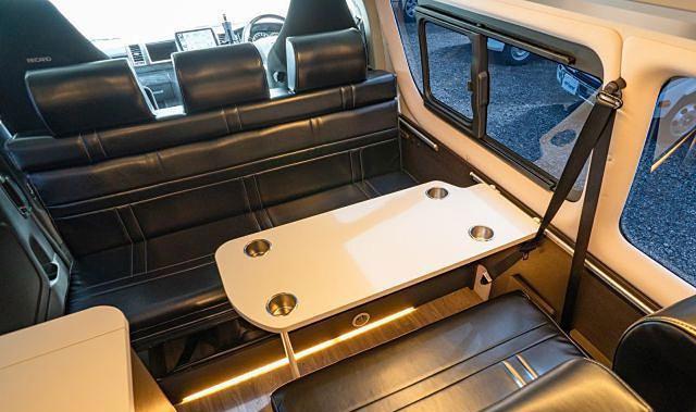 丰田海狮Hiace越野版的空间设计非常灵活,拉开车门的那一刻,所有关于房车拥挤的偏见都会被打破。车内的布局让人感到宽敞,第二排和第三排的座椅可以轻松放倒,铺上定制床垫后,瞬间变出一张1.9米×1.2米的双人床。床头紧挨着储物柜,衣服、充电宝随手塞进去,完全不用摸黑翻行李。这样的设计让人感到非常贴心,尤其是在夜晚,能够轻松享受舒适的睡眠。