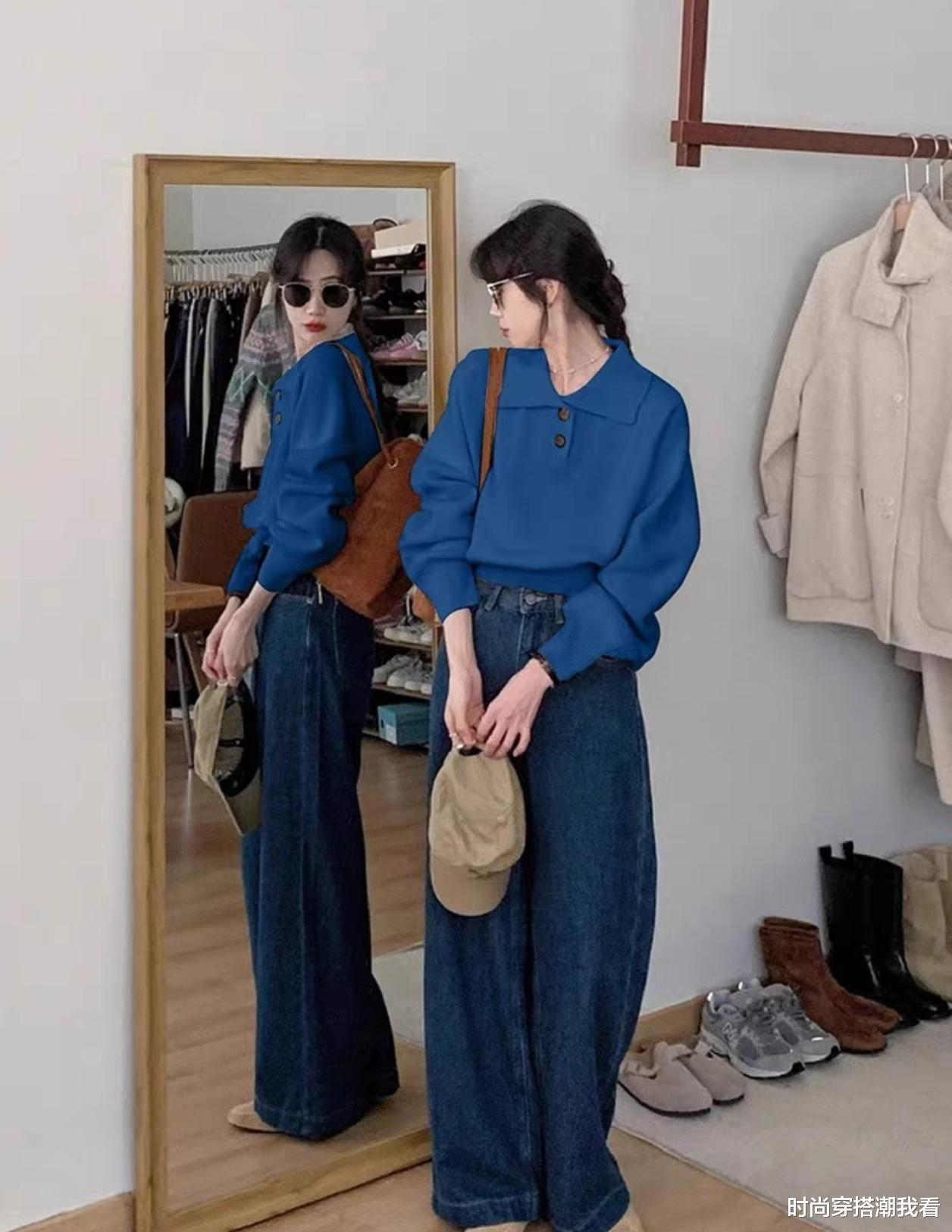 蓝色系搭配同样出彩,婴儿蓝色毛衣搭配丹宁蓝牛仔裤,清新干净;克莱因蓝大衣配湖蓝色印花长裙,深浅变化中尽显高级感。