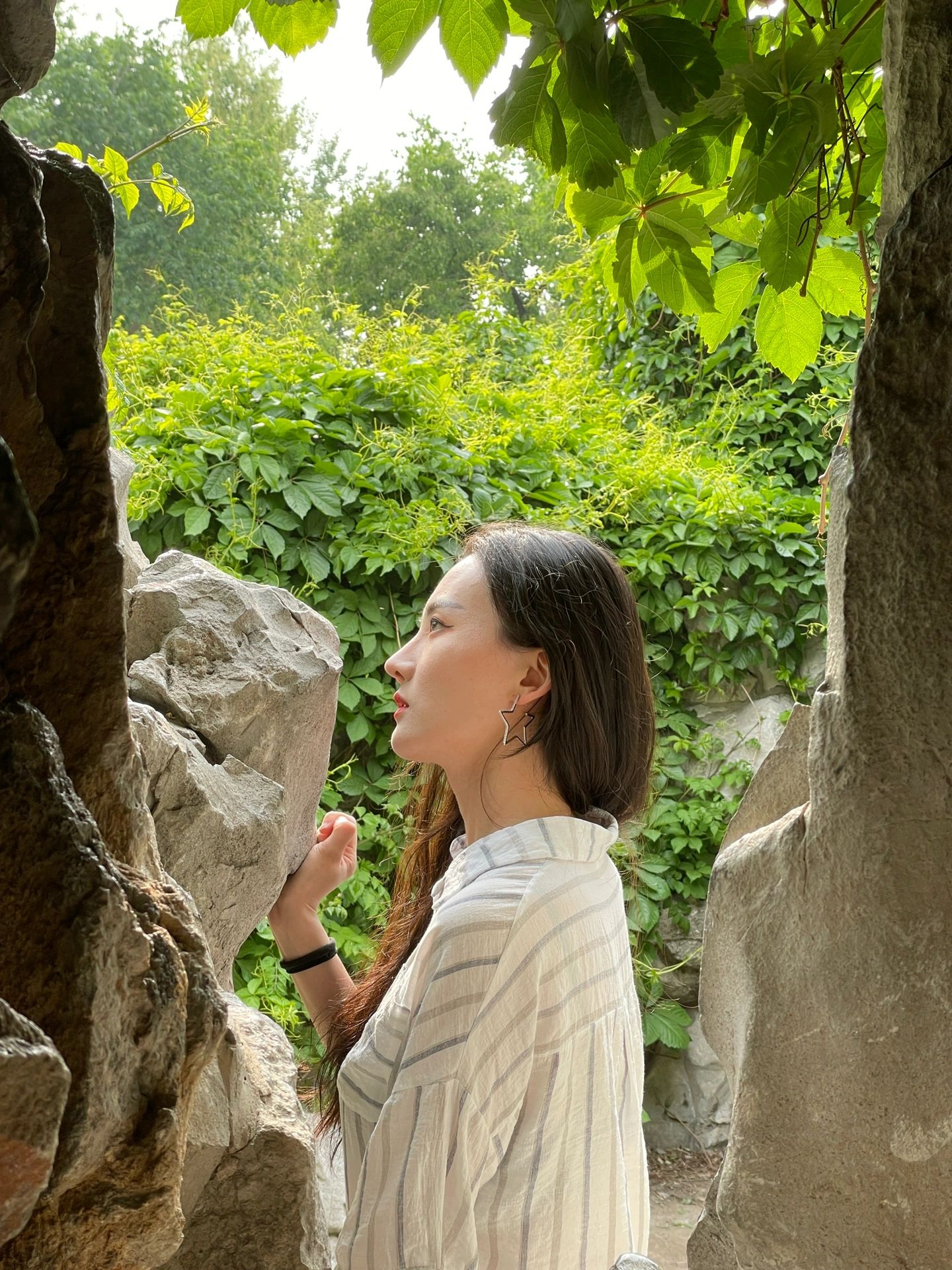 大观园超出片的,有一个神机位在蘅芜苑的假山里,模特站在假山外面,摄影师在假山里面,透过石头的缝隙拍,下午的阳光打在脸上绝绝子!