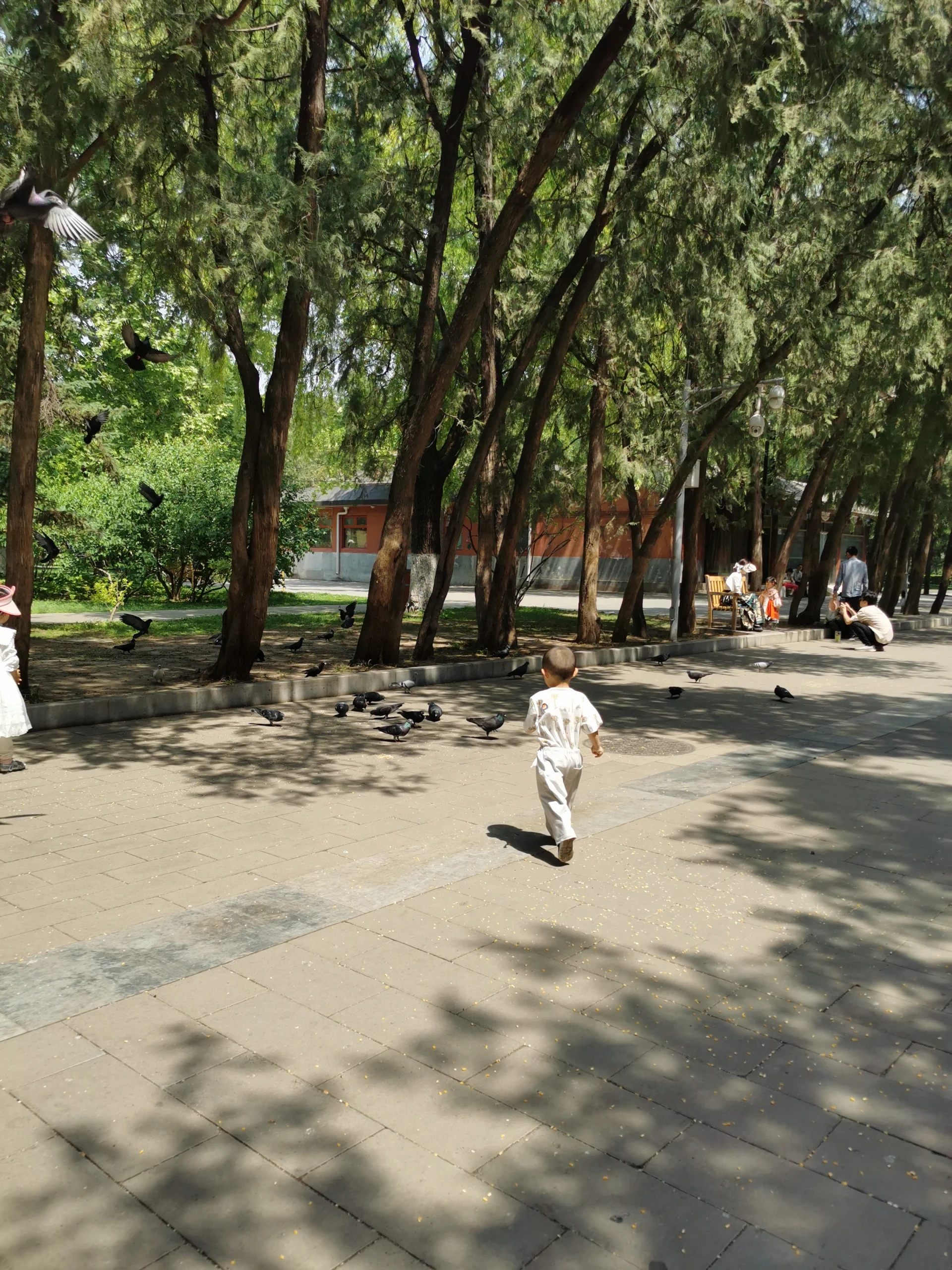 1.小龄宝宝活动:中轴线中间部分有很多鸽子很多小朋友会自己带小米来喂。