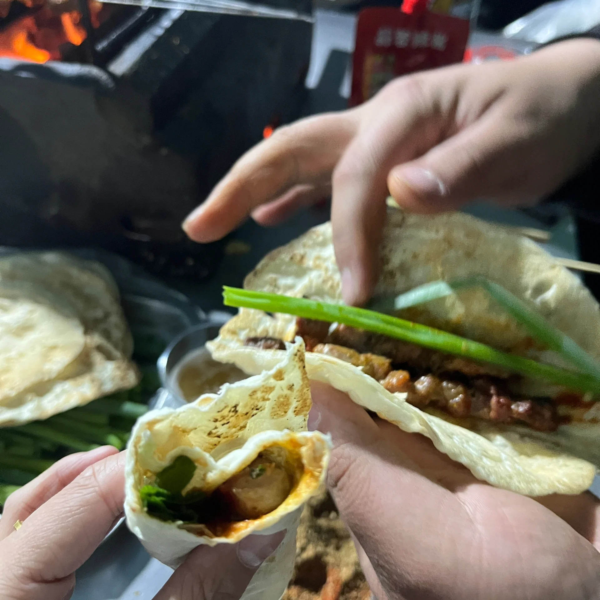 八大局 :充满了人间烟火气,各种小吃都很nice、打卡炒锅饼、紫米饼、香酥牛奶棒、博山火烧、徳善叔烤鸡架。