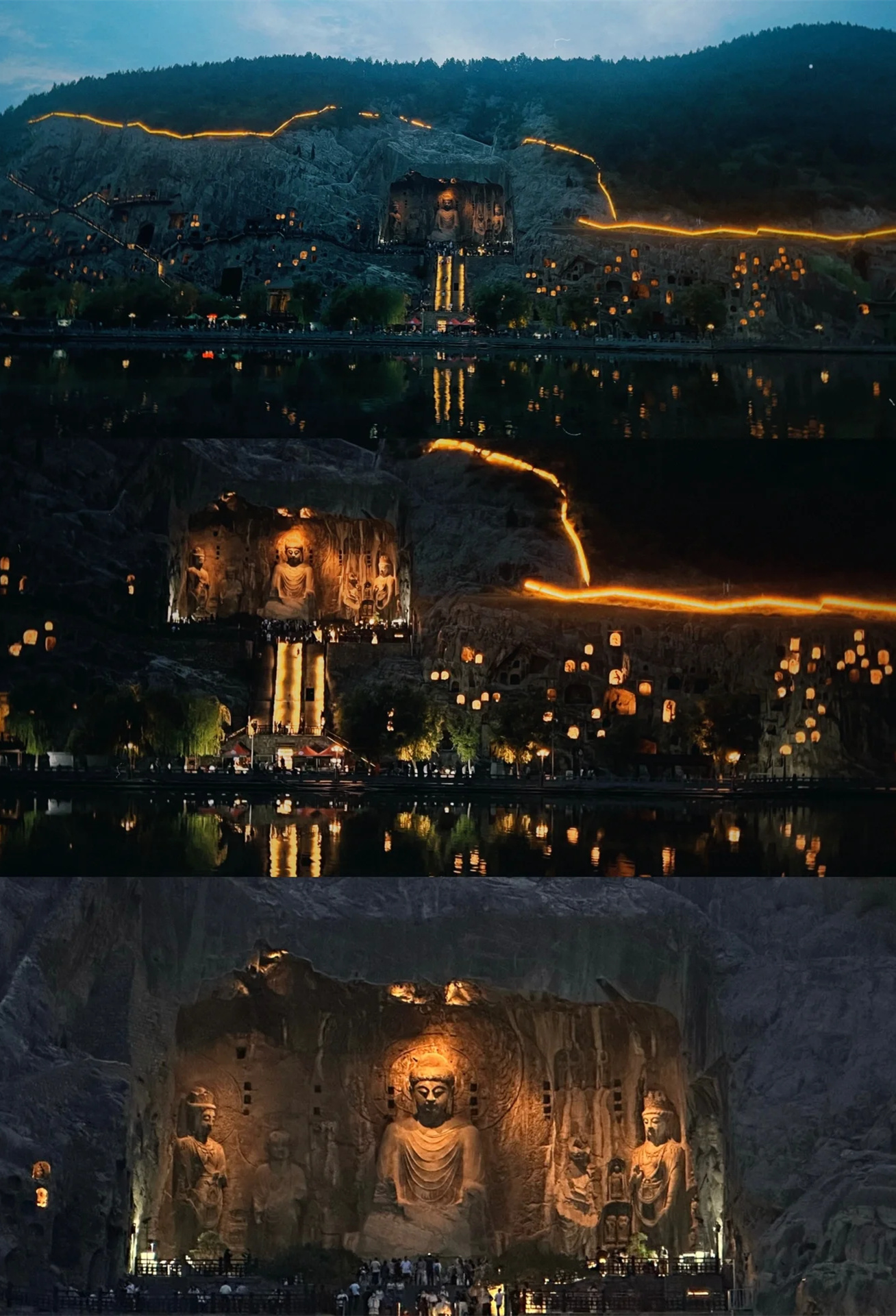 在对岸等了一个多小时,看到了石窟开灯(7点15分),天色暗下来之后太绝了,隔岸看大佛更加神圣。