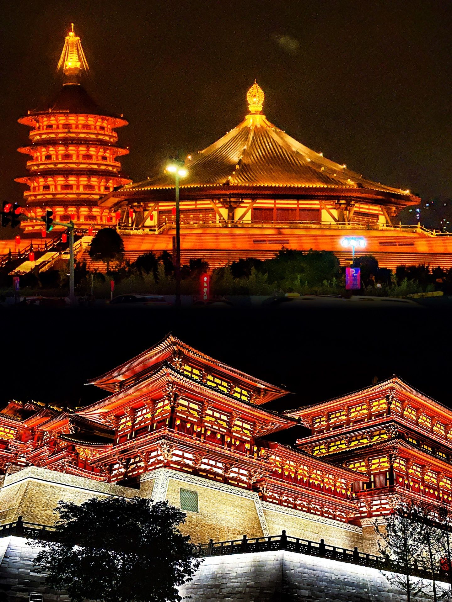 洛邑古城看古城夜景。