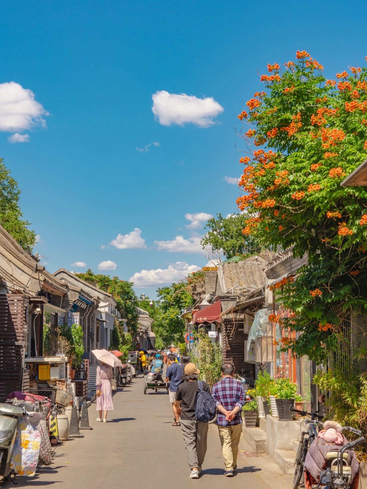 ✅五道营胡同:胡同里很多文艺的小店,店面非常适合拍照,凌霄花开的很美。
