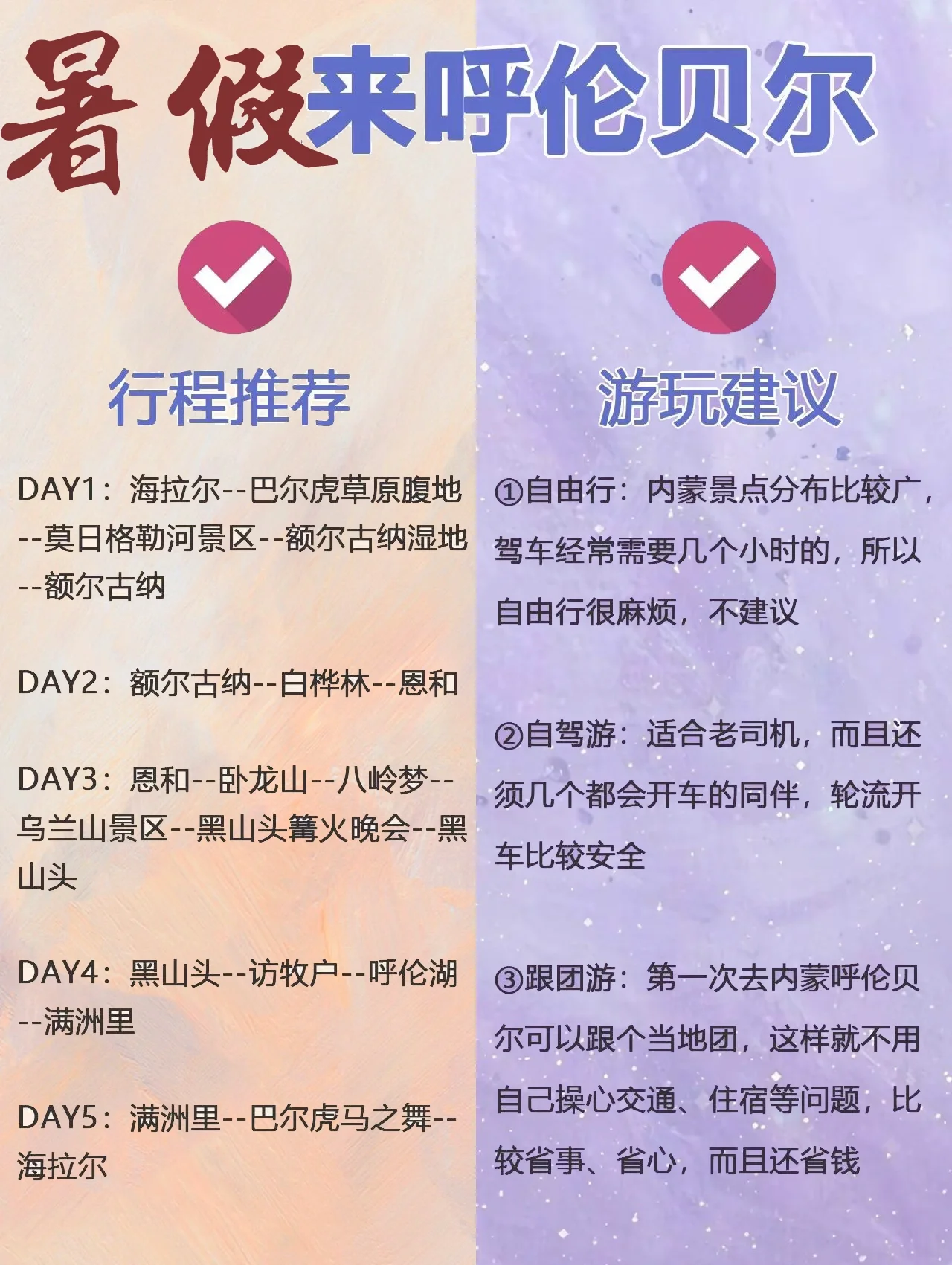✨路线:✈所在地-海拉尔机场﹣呼伦贝尔大草原﹣恩和俄罗斯族小镇﹣室韦﹣黑山头﹣满洲里。