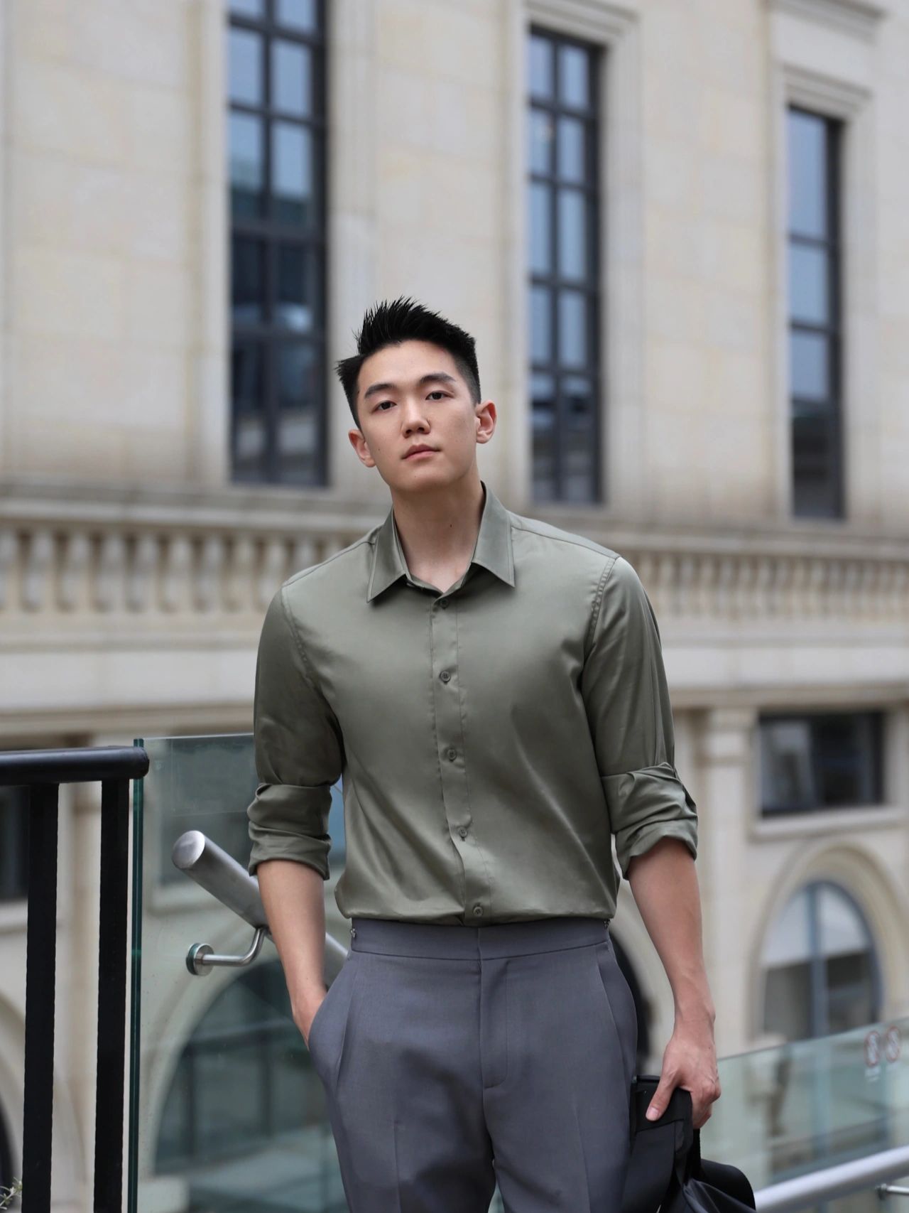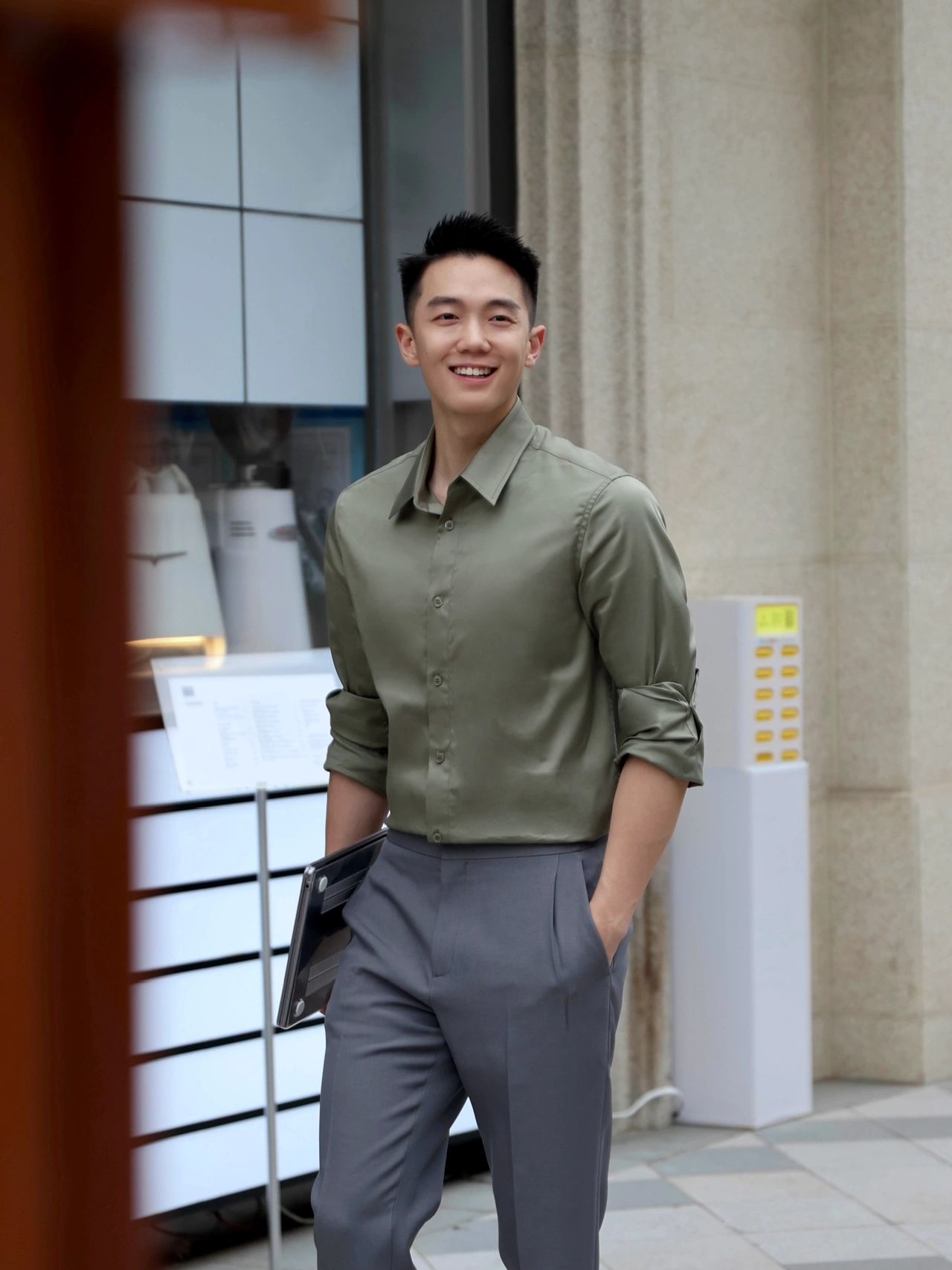 所以夸张的色彩不太适合通勤今天上身的衬衫让我联想到多巴胺穿搭高饱和度的同时,不会过分吸睛打破沉闷,带来更多新鲜感加上丝滑的缎面材质让整个穿搭适当的“亮”起来裤子选择的是偏灰休身西装裤毫无违和感