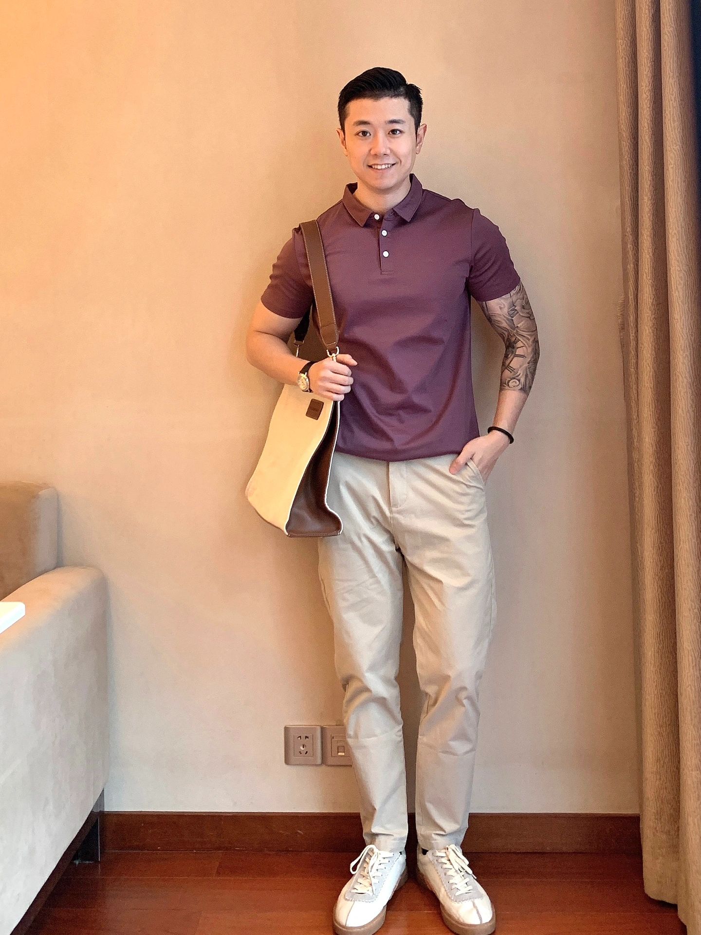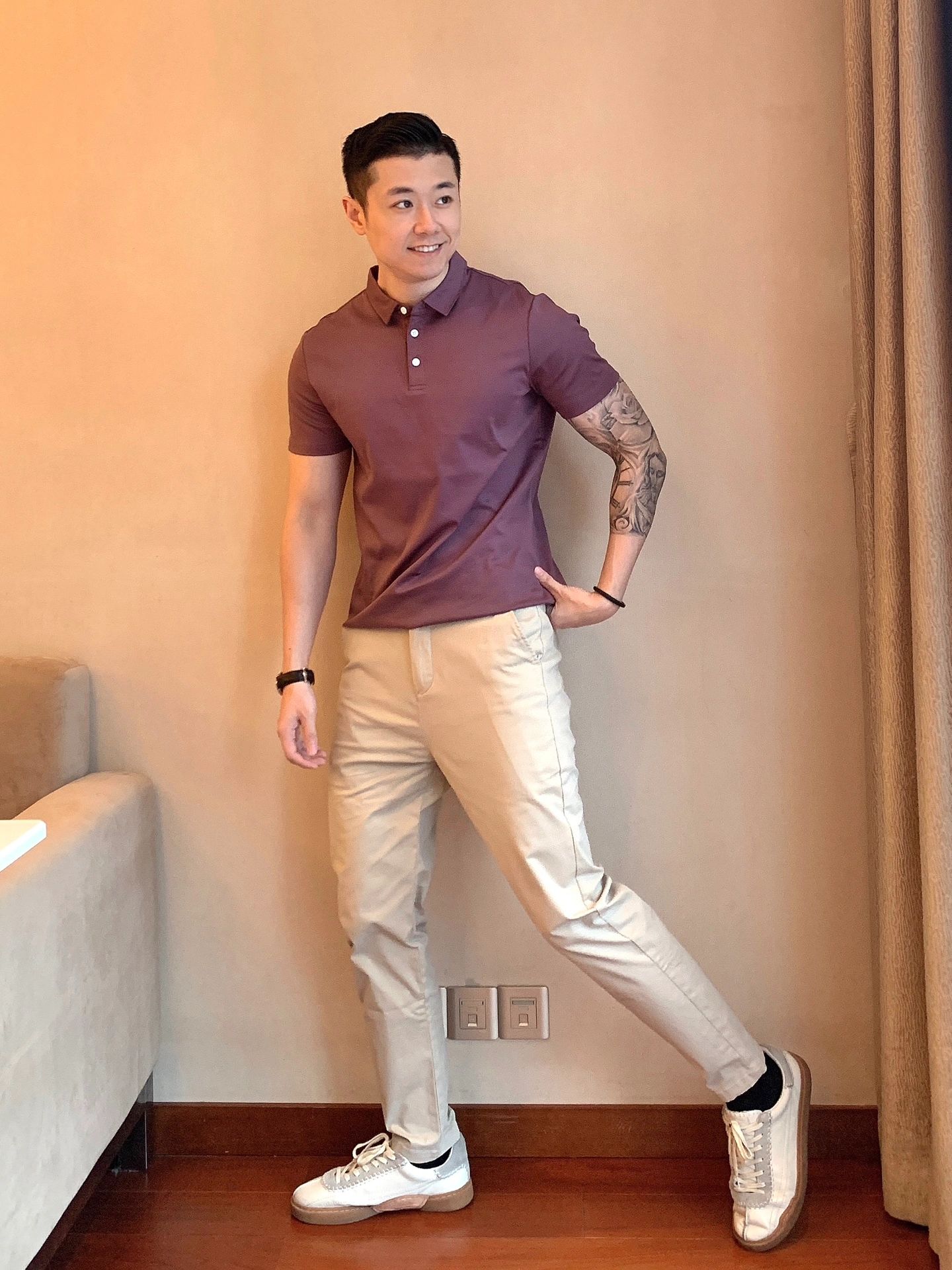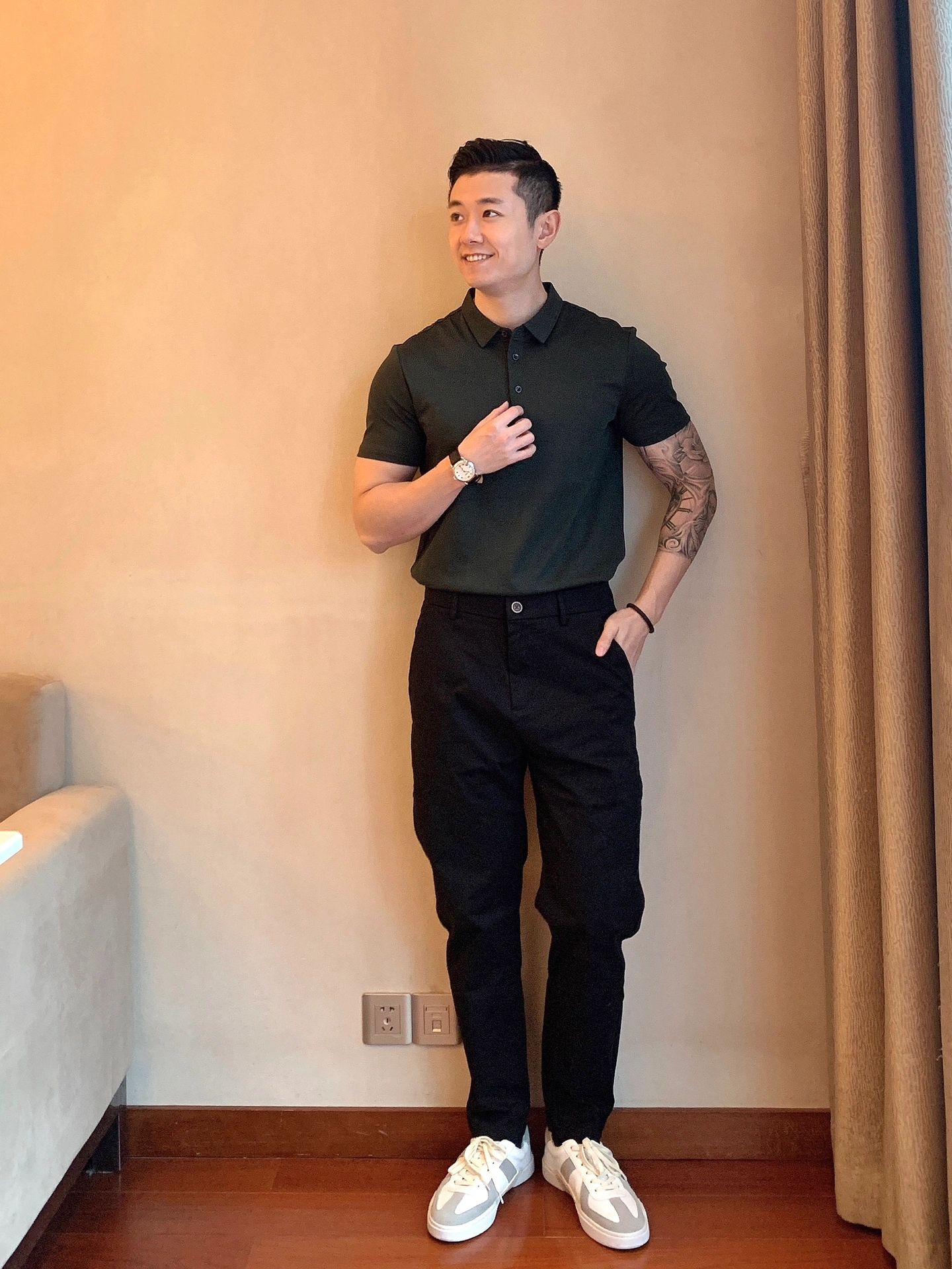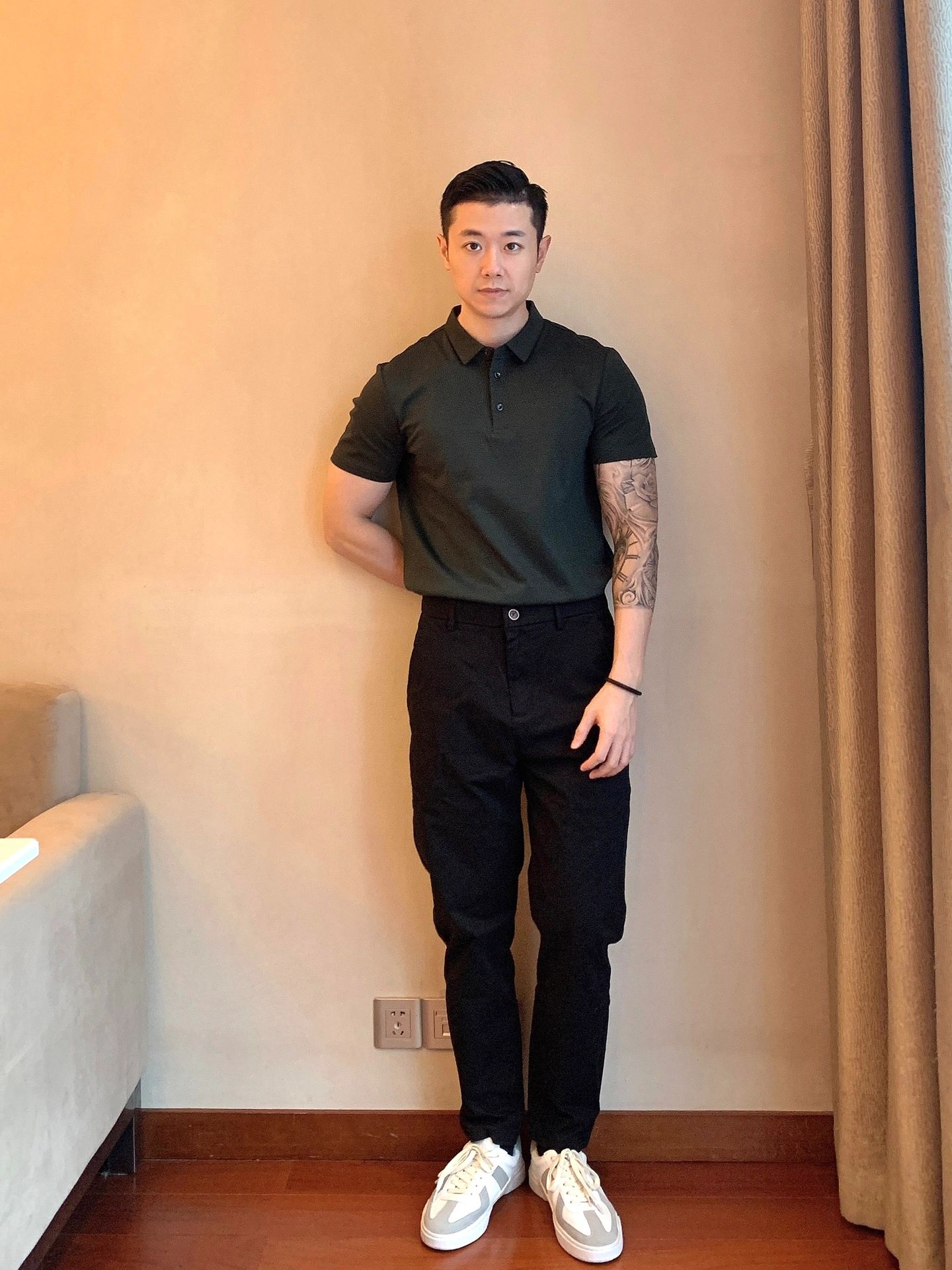 今天带来两套不同色系的职场通勤穿搭 Look1上身选择了短袖Polo衫,绛紫色的配色非常高级。同样也适合男生,偏浅的颜色所以下身同样也选择了浅色系的卡其色长九分裤,比长裤微短的裤长在保证年轻的同时更兼容多种场合。鞋子选择跟裤子同色系的卡其色德训鞋即可。 Look2同一款的墨绿色Polo,有丝光棉的加持更加具有识别度~下身选择了净色纯黑的休闲裤更加可以突出上身的颜色,整体偏暗的情况下鞋子选择一对小白鞋可以让整体提亮~