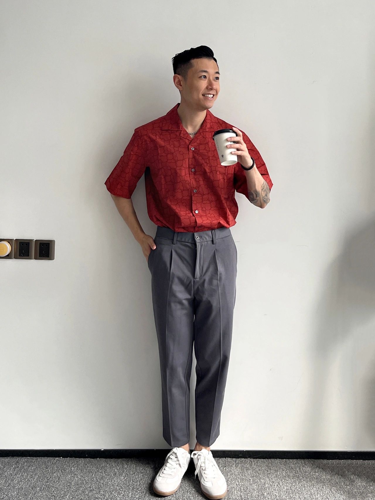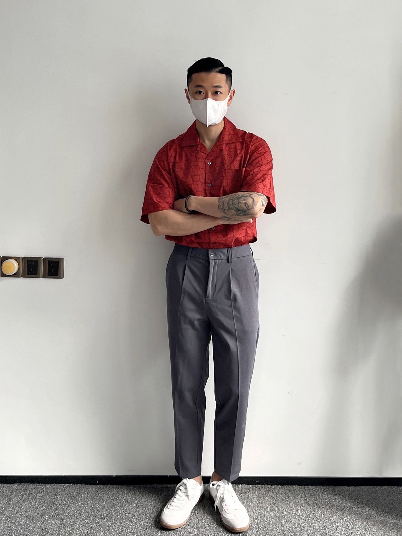 花衬衫是夏季必备的古巴领设计 搭配一条金属项链就很cool 材质是纯棉的 版型上身很挺阔有型不软塌