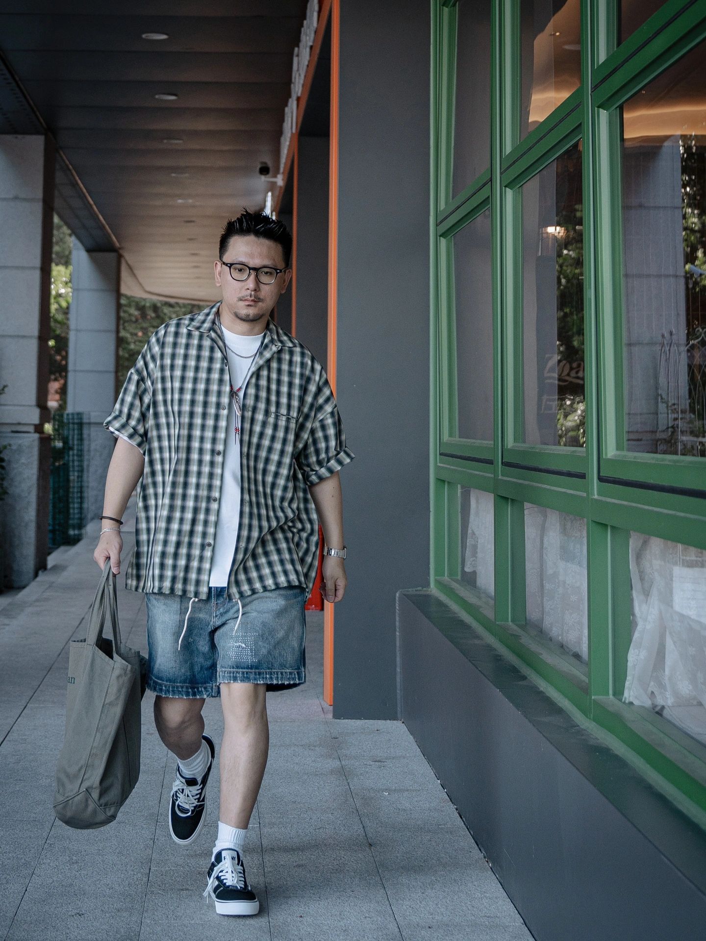 大叔的穿搭就是要简单 但又不简单 简简单单的格子衬衫搭配一条牛短 看着简单嘛 但似乎不简单