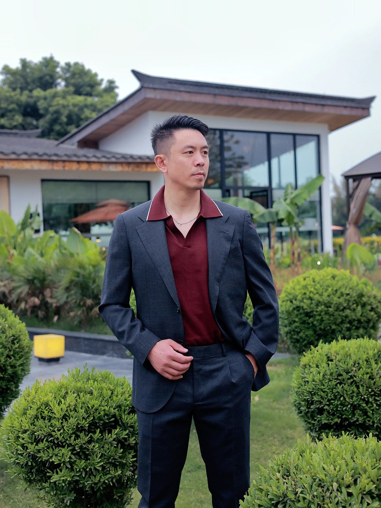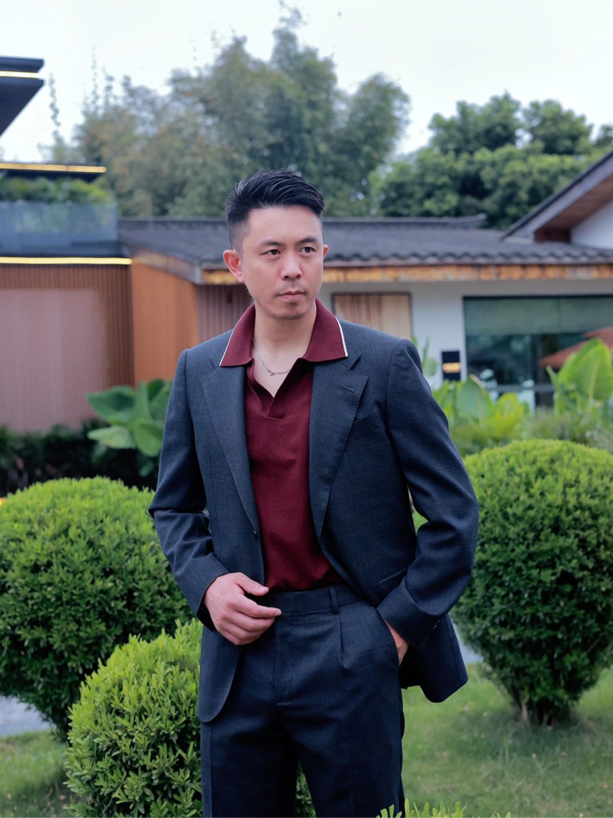 穿搭1颜色冲击:黑蓝色西装与酒红色内衬形成鲜明颜色冲击黑蓝色给人成熟又稳重的气息,酒红色给人热情又洒脱,二者结合在一起,显得即成熟又有青春气息yyds,把握成熟稳重的同时,也让一举成名