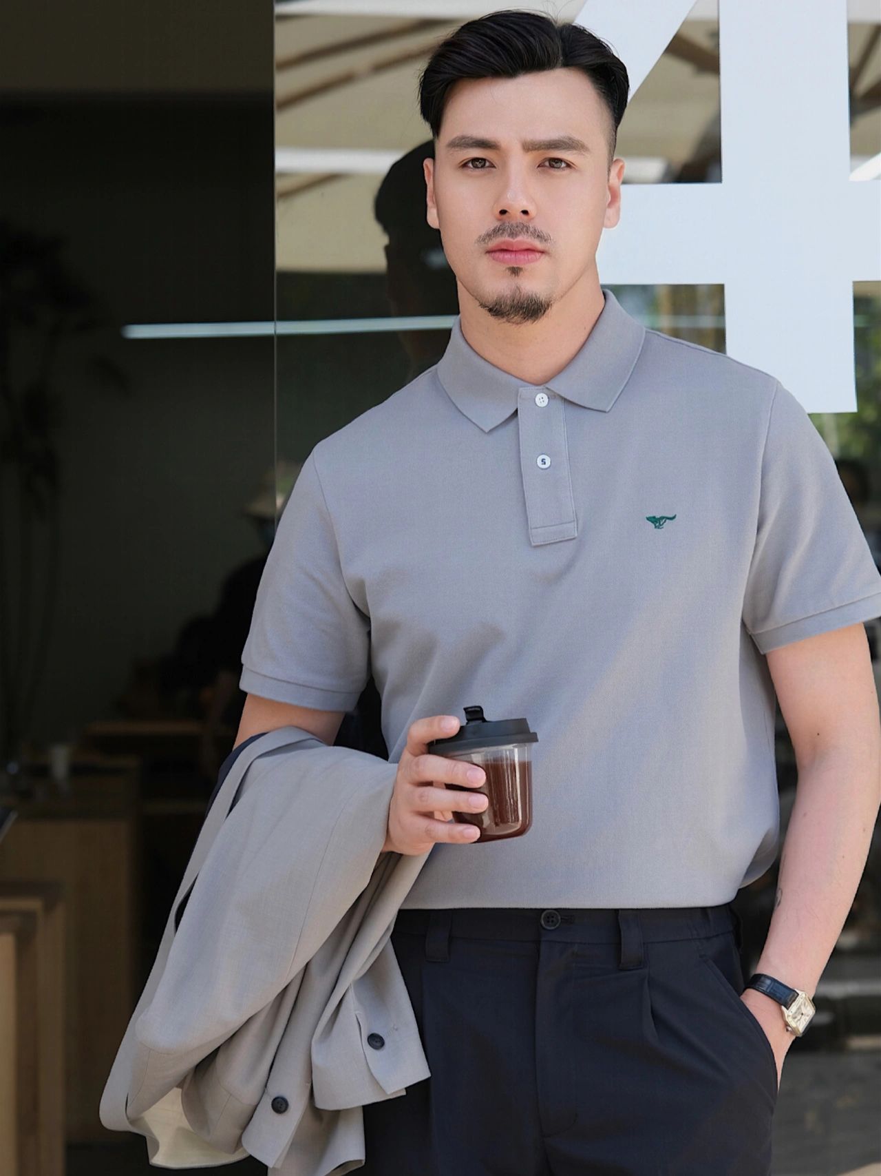 35职场男生假期出行这么穿除了千篇一律的衬衫西裤外polo衫真的是好搭的单品不管是职场通勤或是日常约会聚餐还是节假日走亲访友一件纯色的polo就可一键搞定型男ootd。