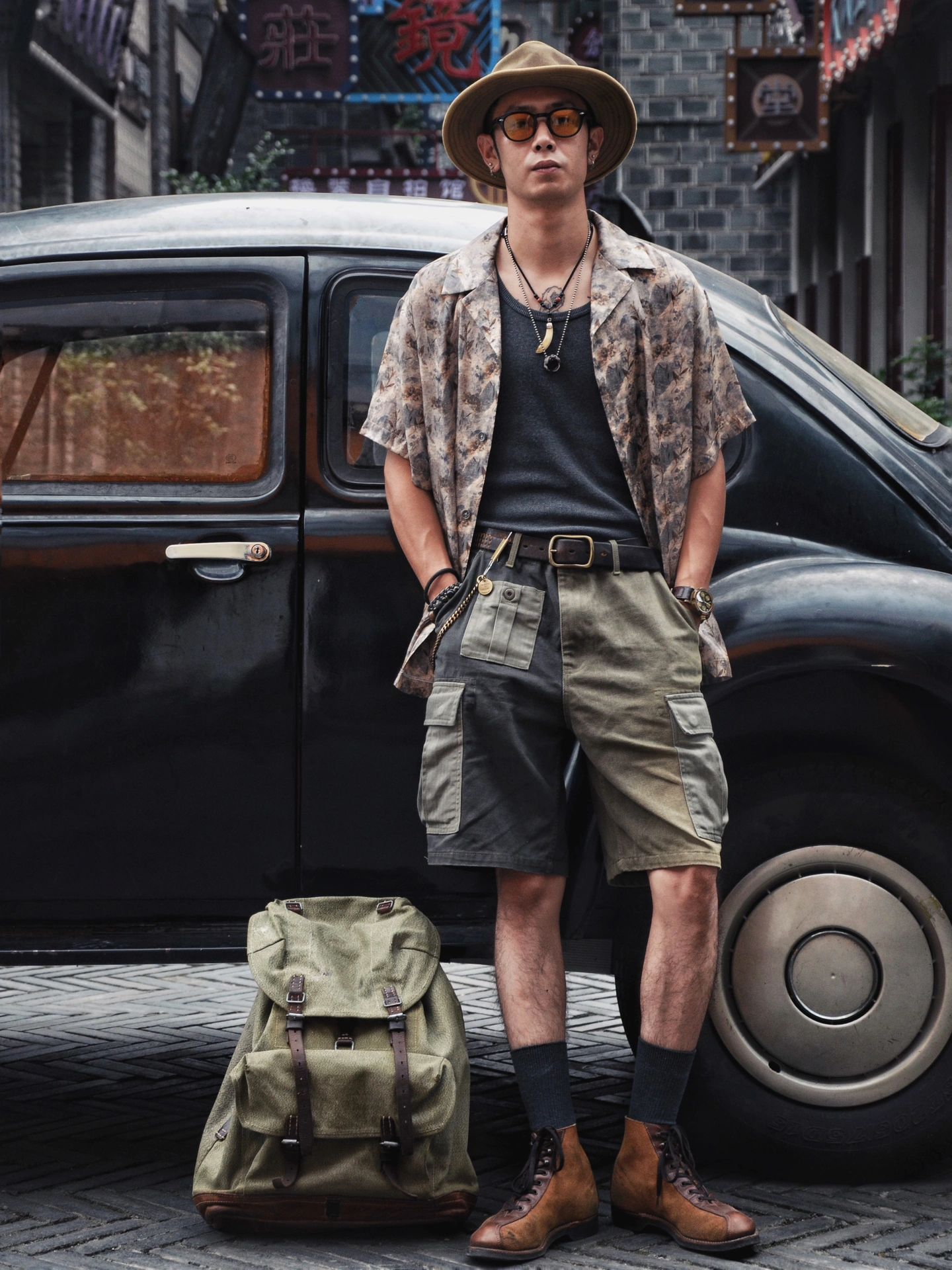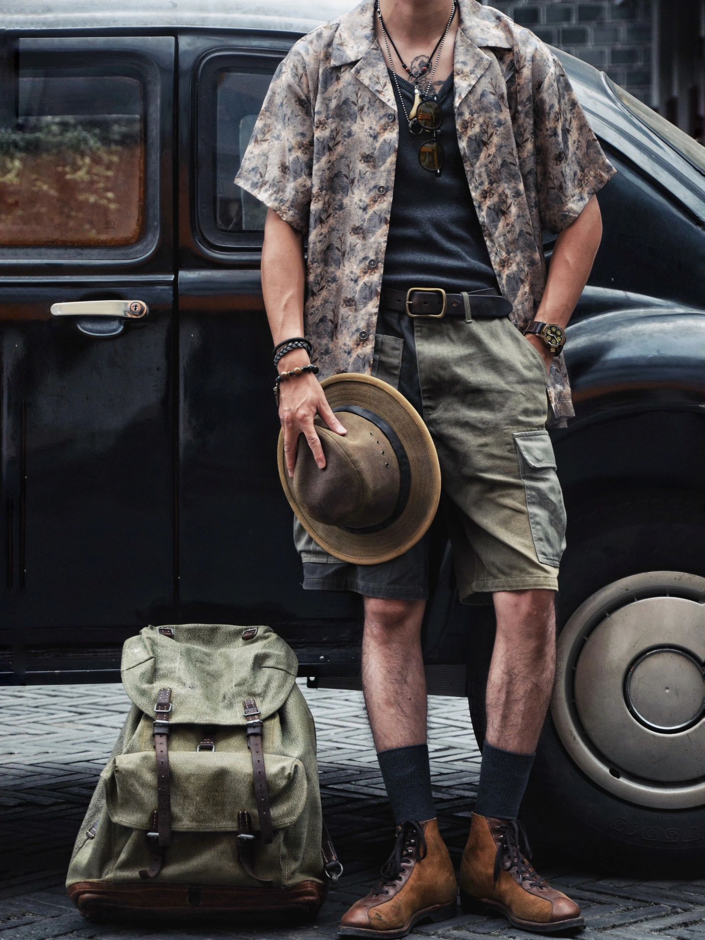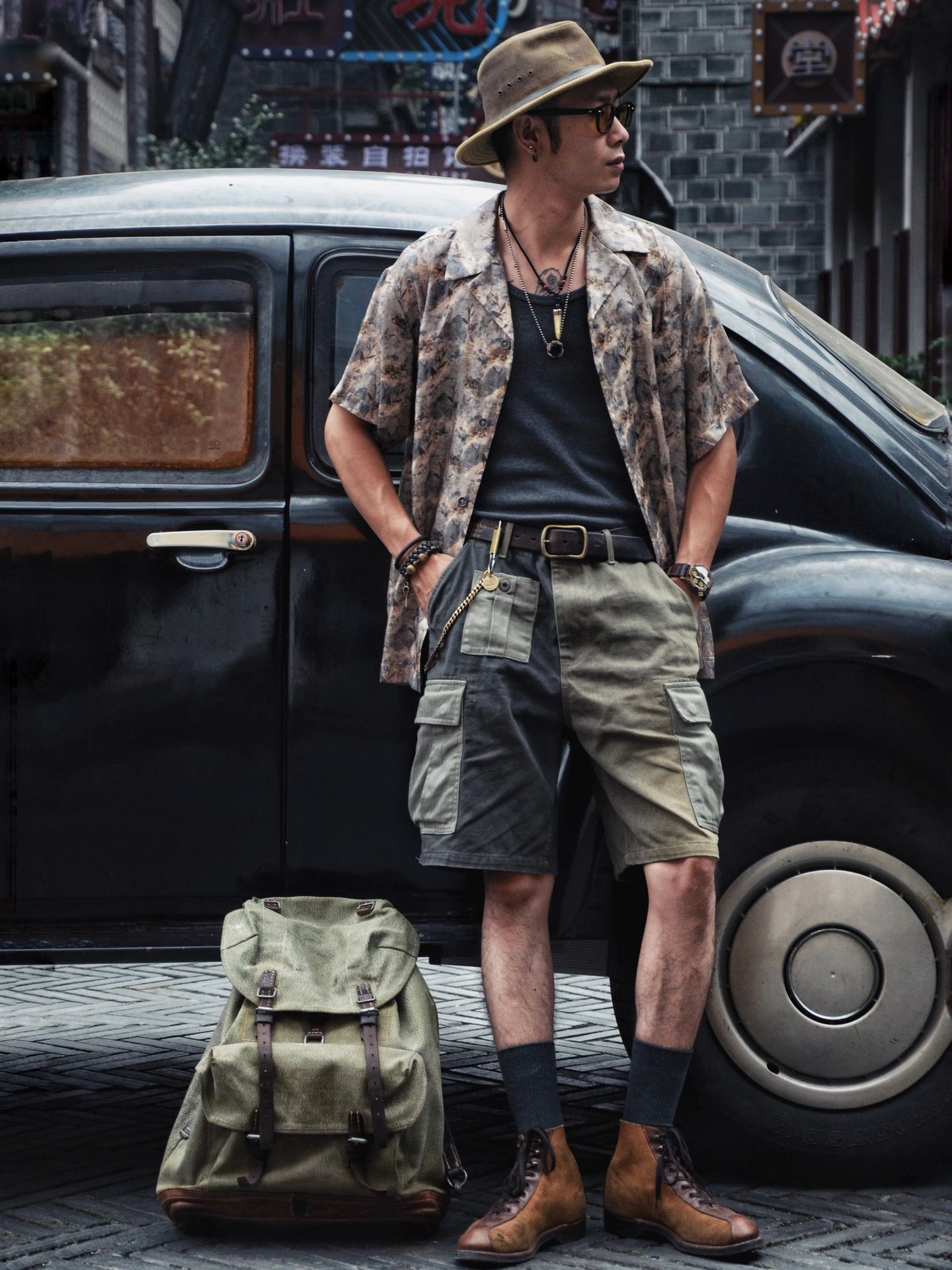 整体搭配美式复古夏季夏威夷衬衫工装混搭,夏季百搭出众单品混搭瞎穿都好看系列。
