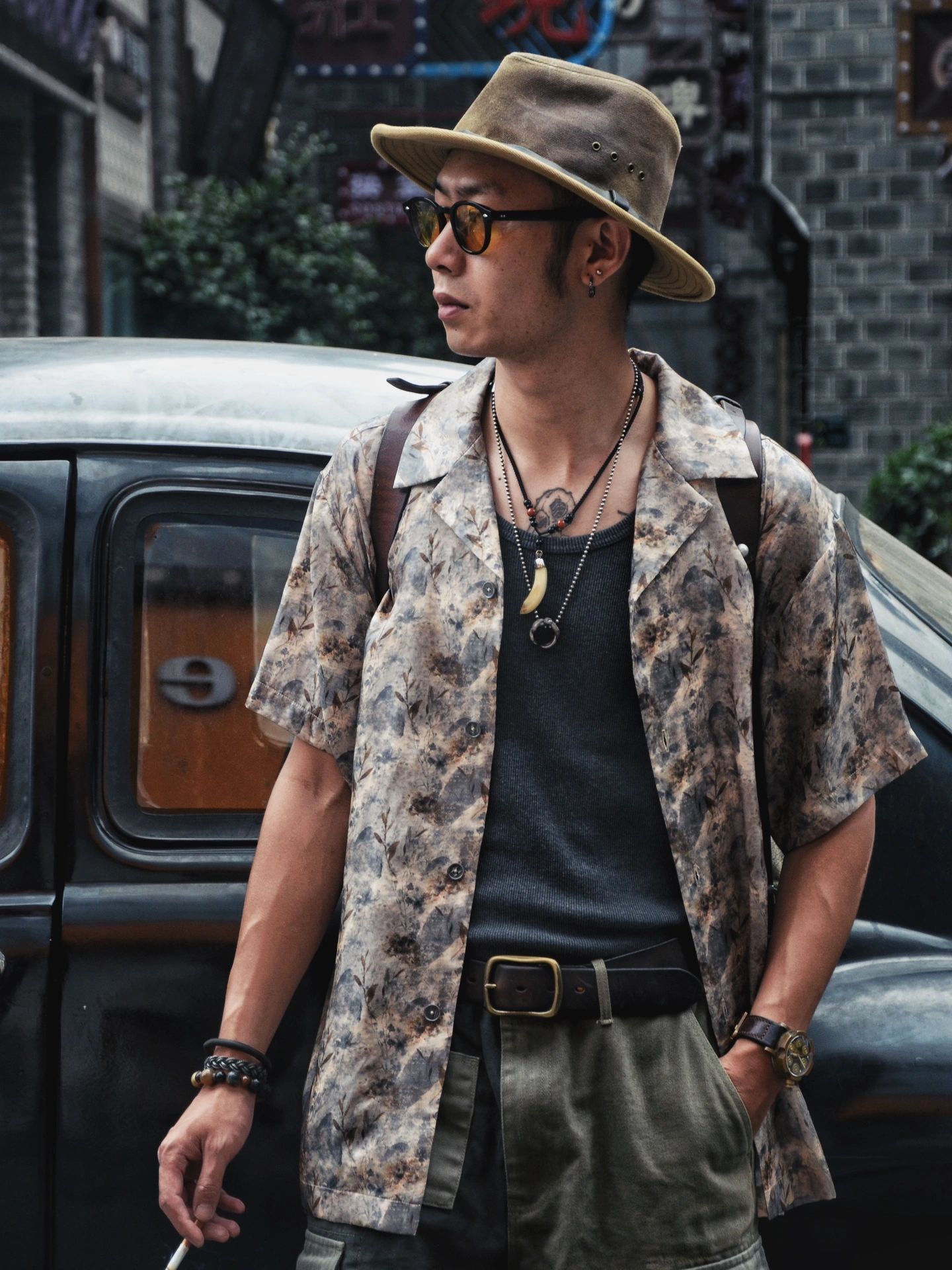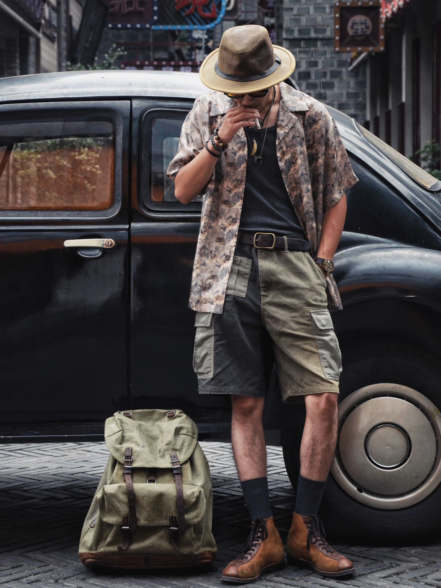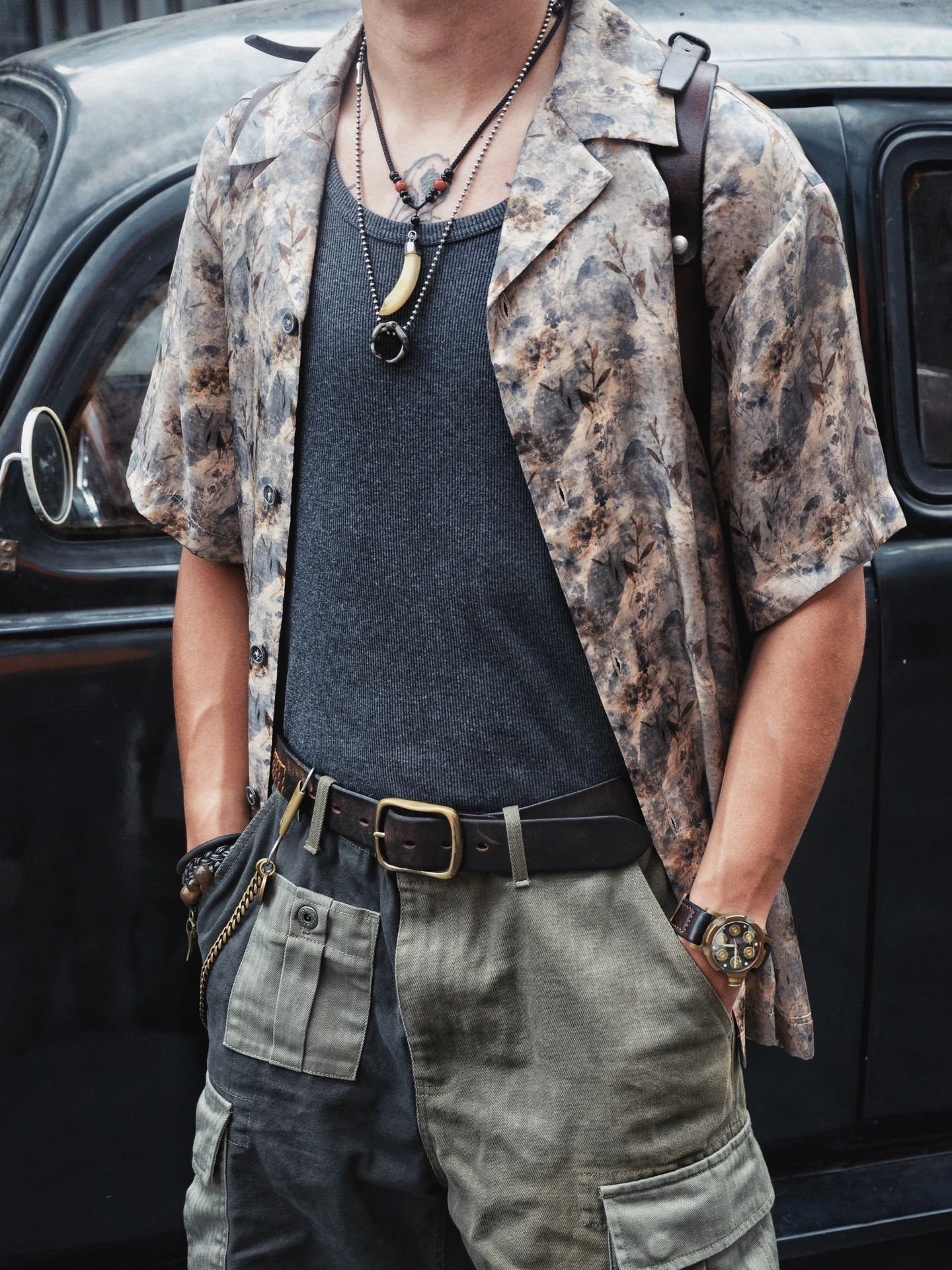整体搭配美式复古夏季夏威夷衬衫工装混搭,夏季百搭出众单品混搭瞎穿都好看系列。