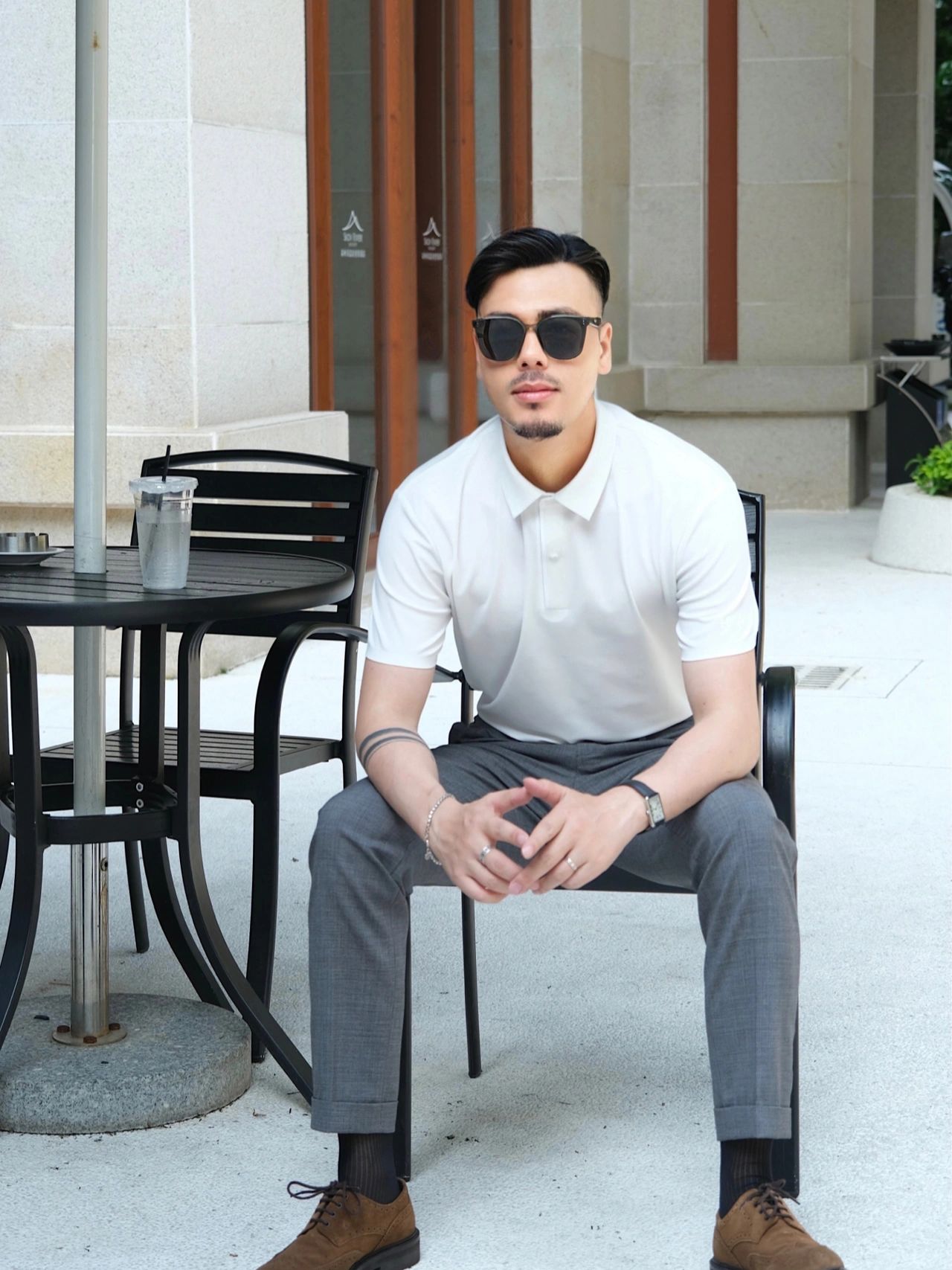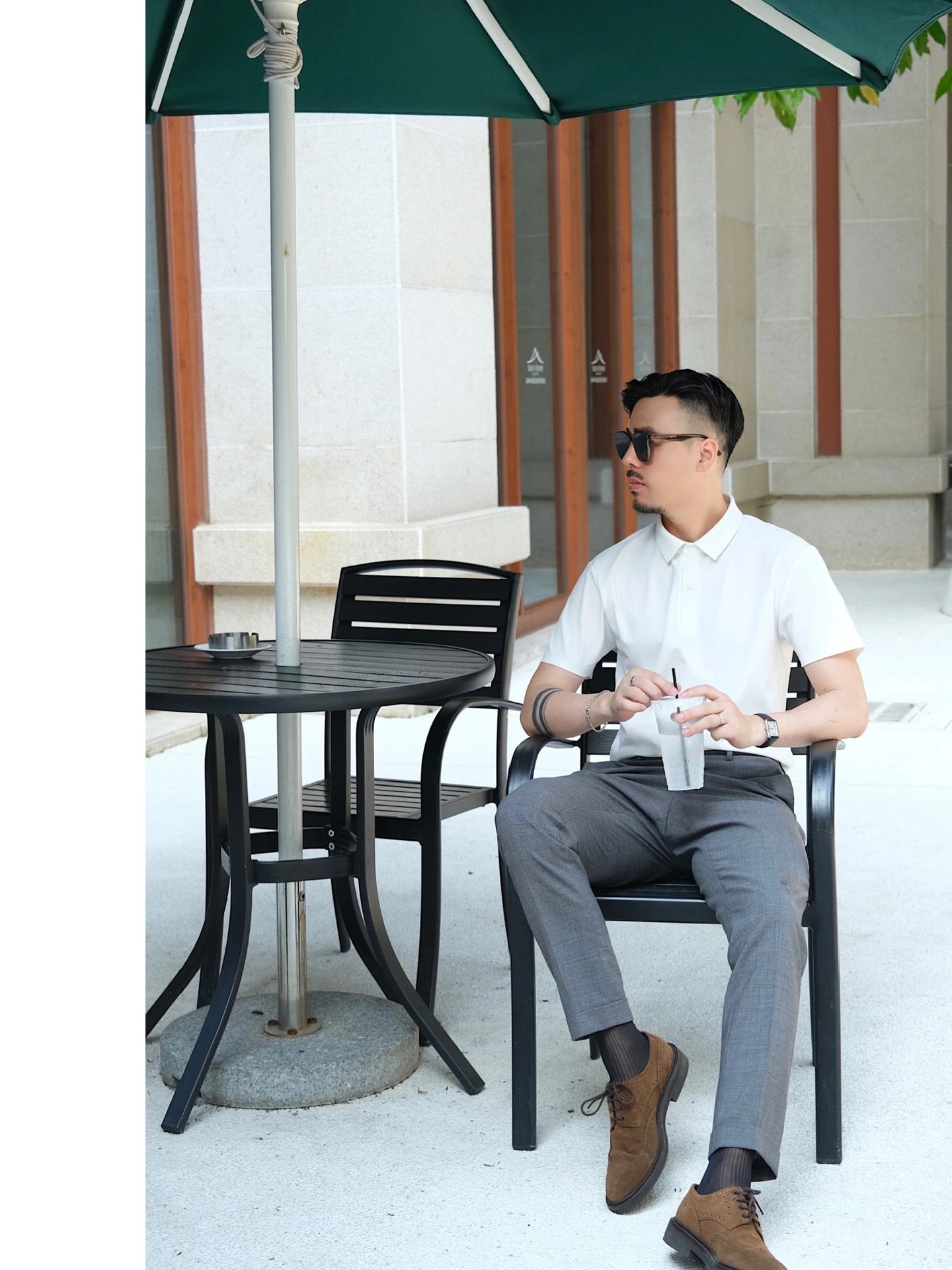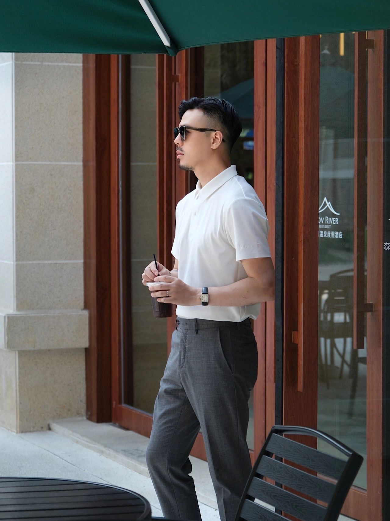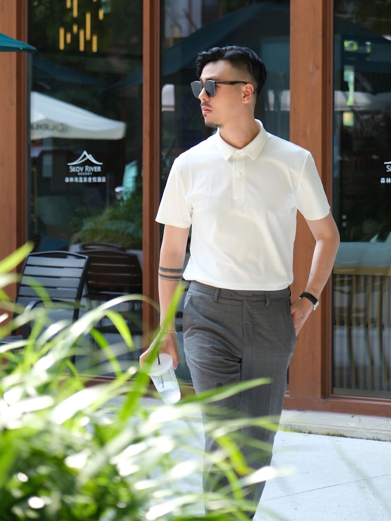 polo穿搭关于polo穿搭真的可以说是随意就可穿出简约气质范。 除了日常职场通勤闲暇时刻也是个人的必备单品上周末去了一趟度假酒店就选了这件纯色的白色polo短袖主要是白色不吸热而且颜色也显得干净男生穿白色上衣也显得蛮养眼搭配的小格子休闲裤棕色麂皮印花简约的同时又能得体到位30的男生穿的简简单单就好。 主要是气质这块咱们得跟上。