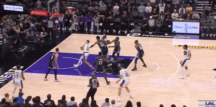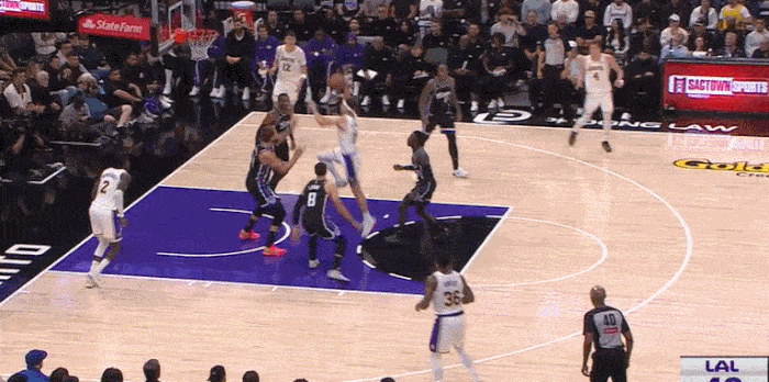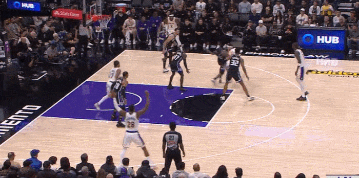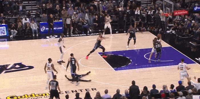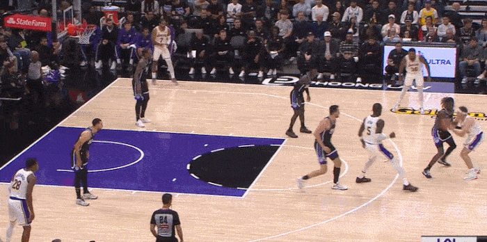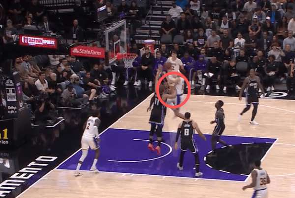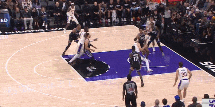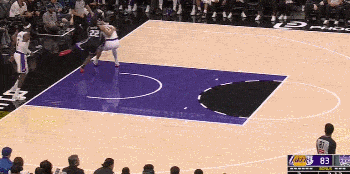 里夫斯上篮时 萨博尼斯明显有推腰动作