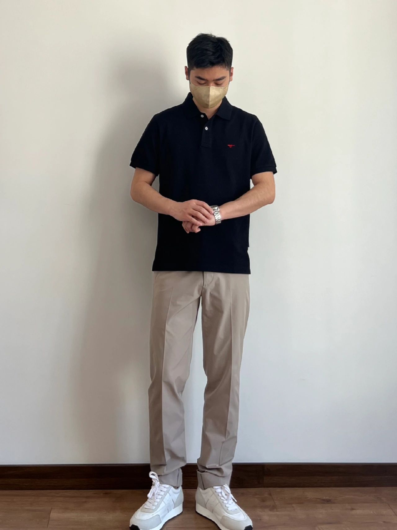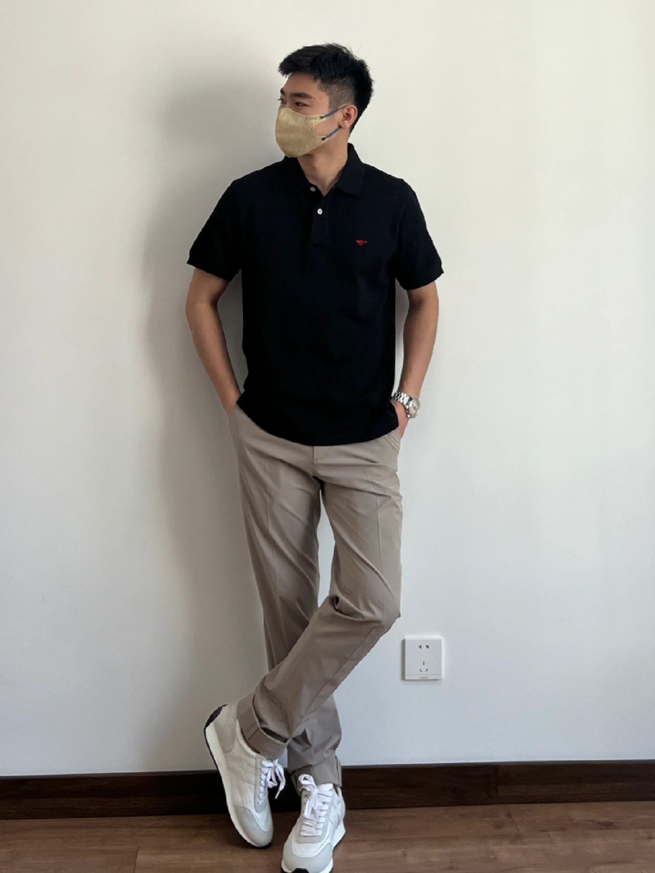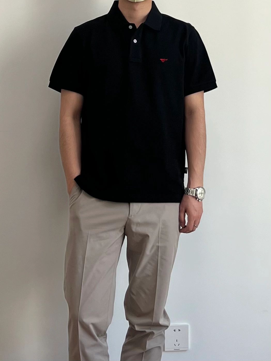 公司的着装范本啊 今天穿上班,同事都在夸,跑来跟我要链接 固色Polo衫加米色西裤,简单又干净的配色 Polo衫黑色加红色logo,配色低调又有小心思,设计感满满日常通勤 商务穿搭都OK