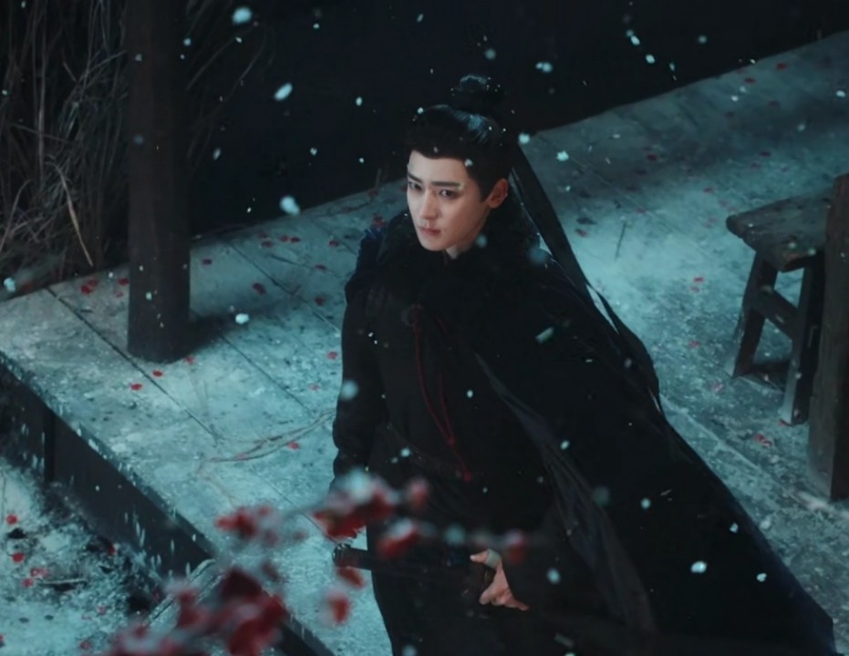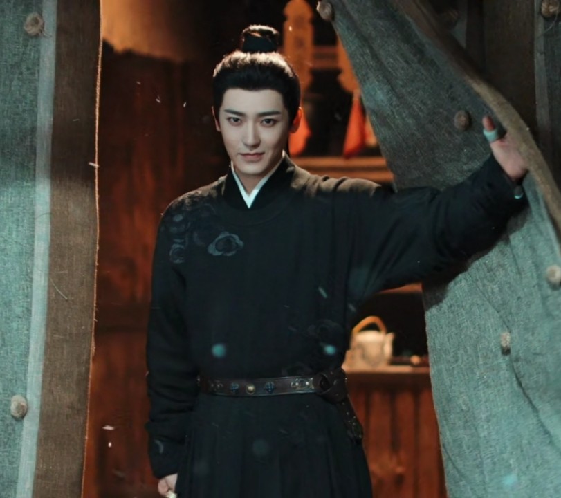 一身黑衣,发型也简单到直接梳成高发髻,没有洗剪吹的蓬松高颅顶,也没有龙须刘海,但谁不夸一句古装美男?